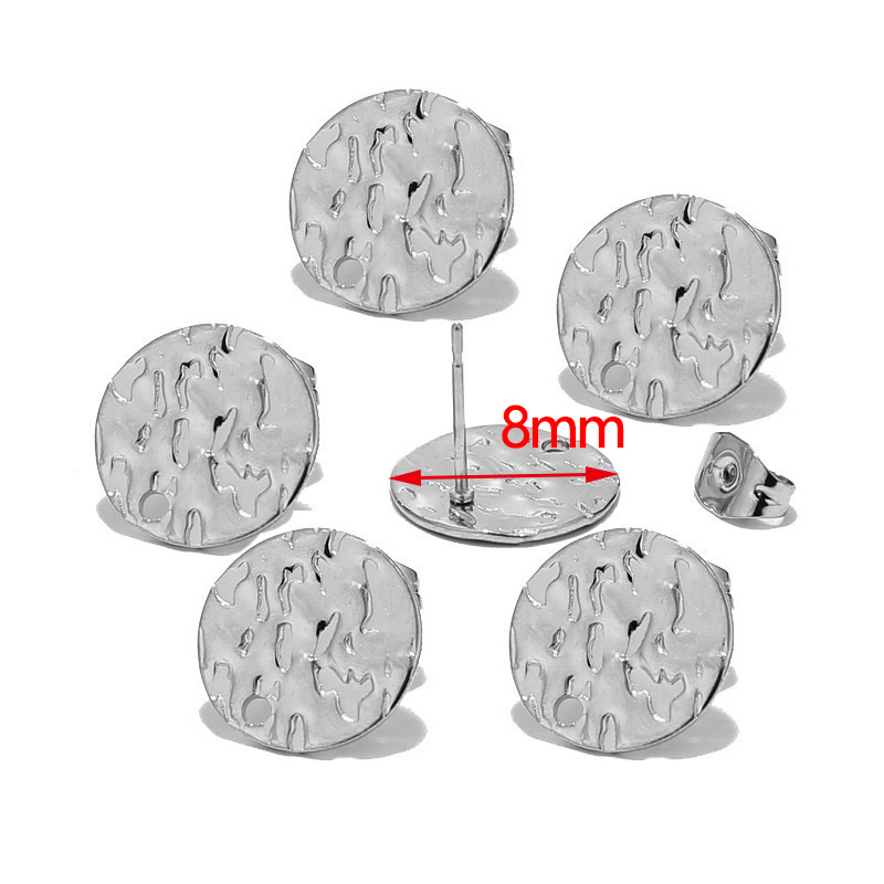 10pcs Gold Silver Stainless Steel Disc Earring Posts With Loop: Hypo Allergenic Base For DIY Earrings Color: 8mm Hammered G