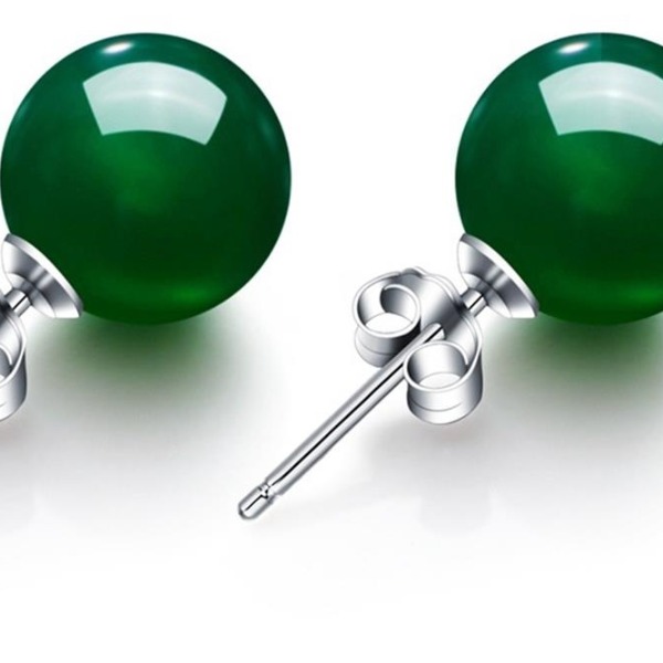 925 Silver Round Agate Chalcedony Earrings: Elegant Designer Fashion Jewelry For Young Girls, Luxury Holiday Gifts For C green