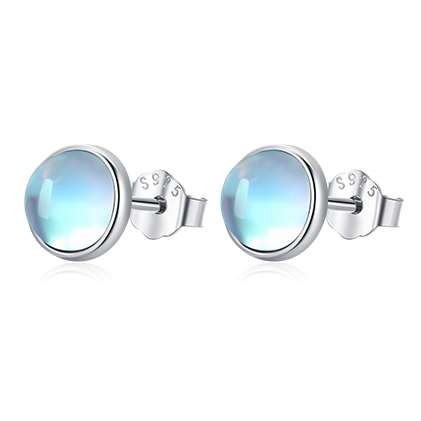 Modian 925 Sterling Silver Moonstone Stud Earrings, 4 6MM Round, Platinum Plated Women's Jewelry 4MM