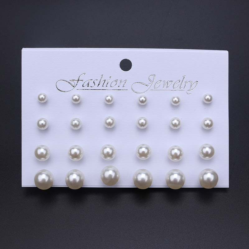 12 Pair Korean Beige & White Pearl Earrings: Simple Fashion Wedding Jewelry For Valentine's Gift ES3356