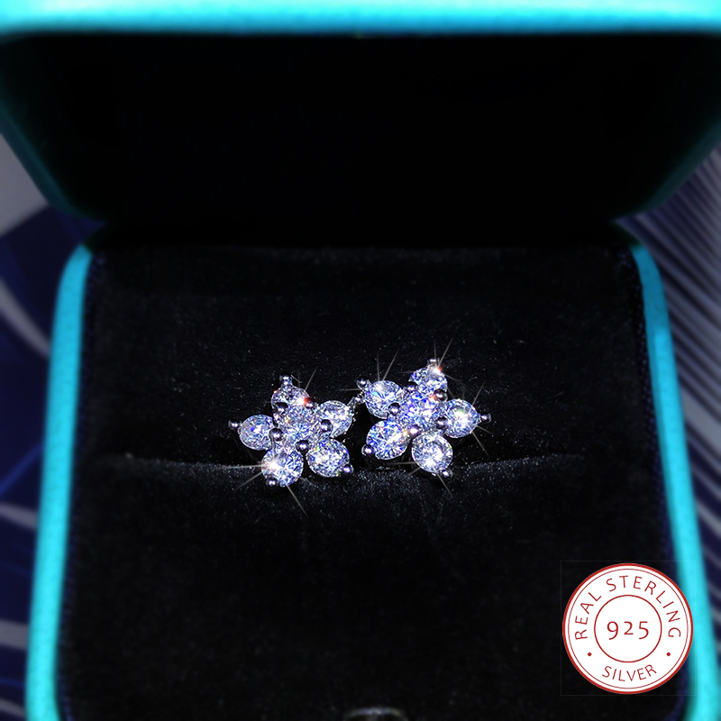 925 Sterling Silver Plum Blossom Stud Earrings With Zirconium Diamonds Fashionable And Personalized Jewelry WHITE