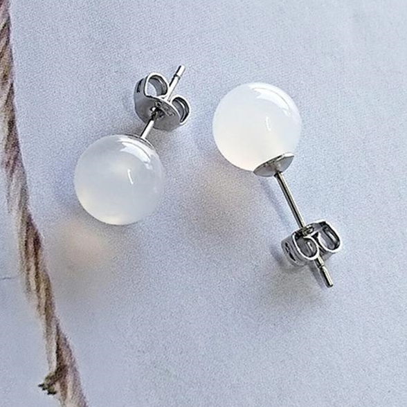 925 Silver Round Agate Chalcedony Earrings: Elegant Designer Fashion Jewelry For Young Girls, Luxury Holiday Gifts For C WHITE