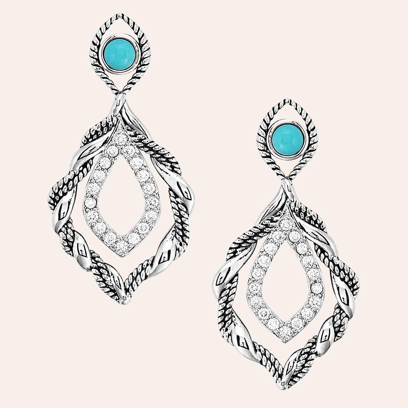 Montana Silversmiths Silver Twisted In Time Turquoise & Cubic Zirconia Teardrop Earrings - NOSZ - From Cavender's