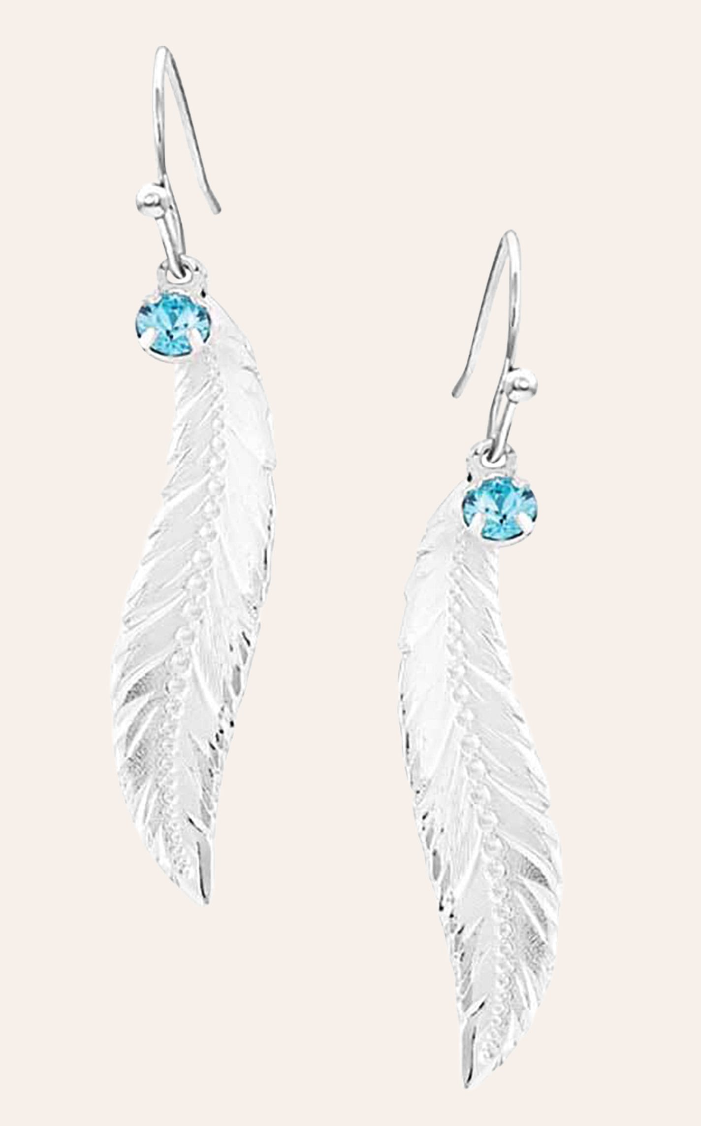 Montana Silversmiths Silver Feather Light Blue Crystal Earrings - NOSZ - From Cavender's