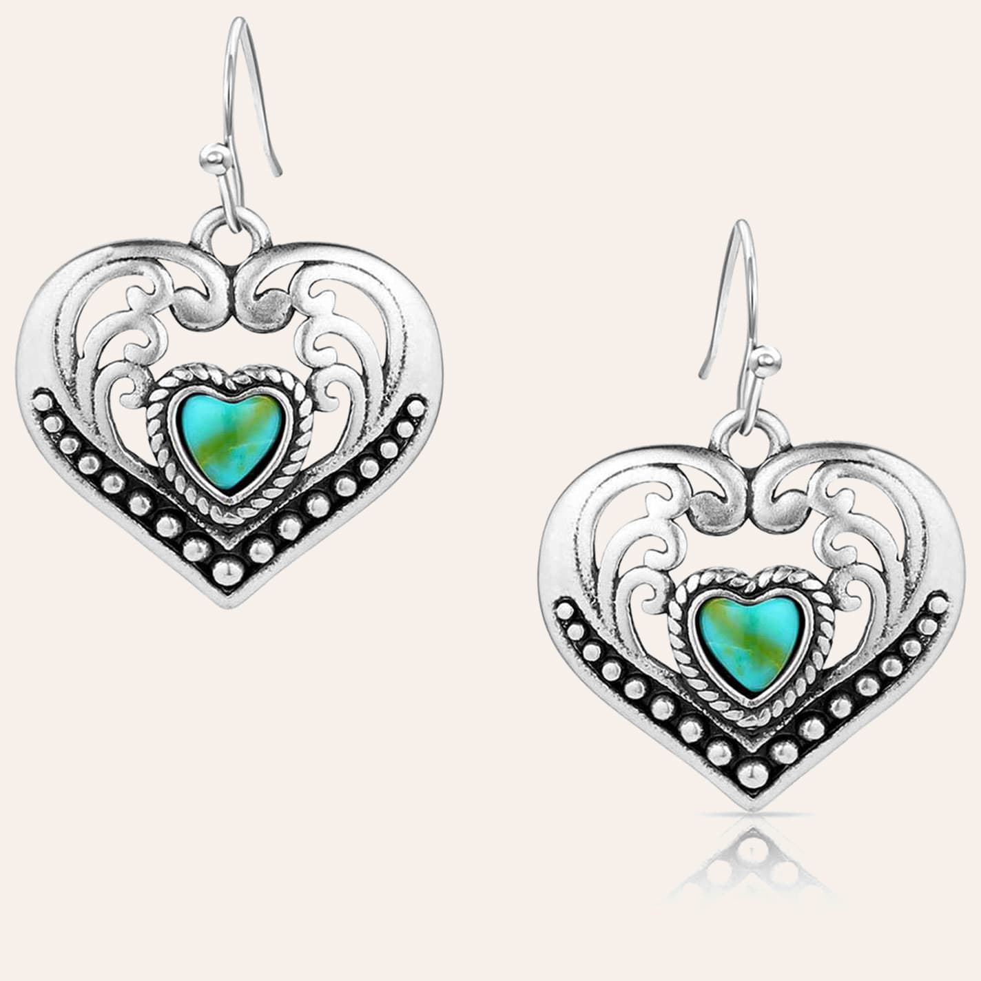 Montana Silversmiths Silver & Turquoise Fierce Hearts Earrings - NOSZ - From Cavender's