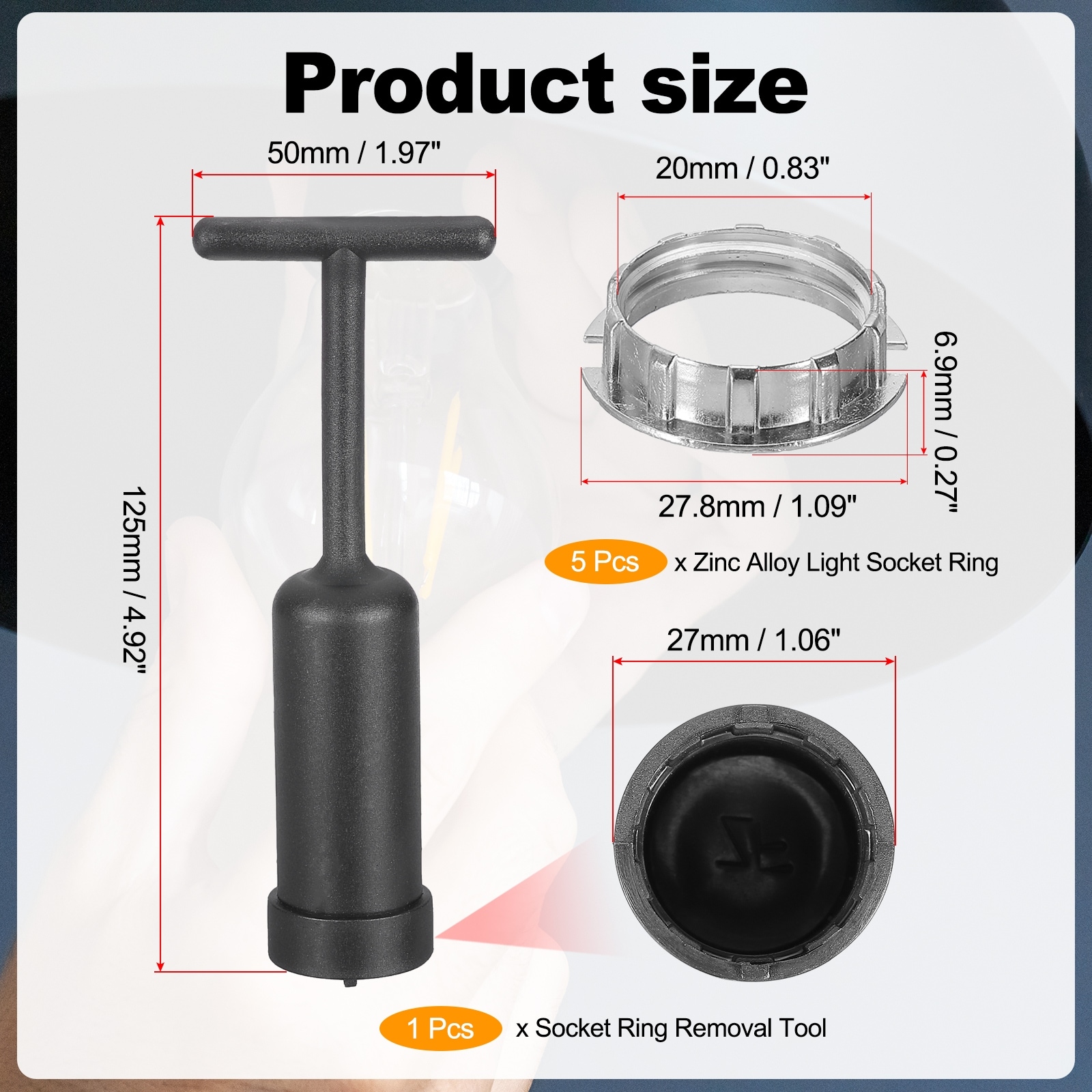 Light Socket Rings Kit, Zinc Alloy Replacements - Silver Tone