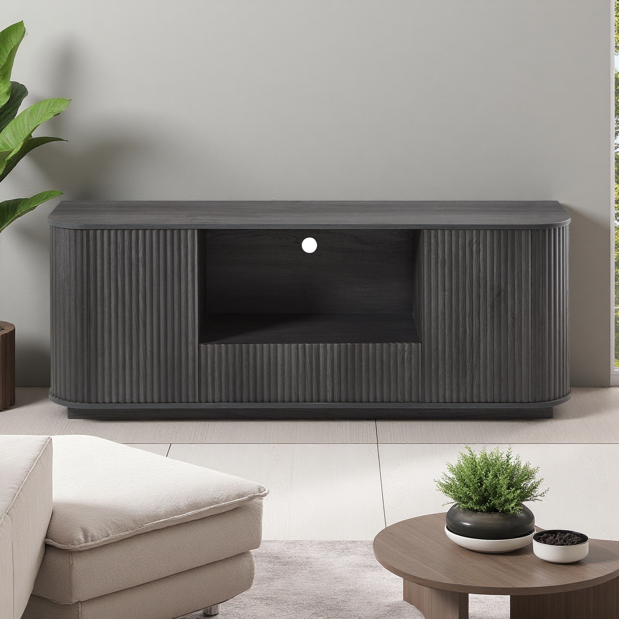 64" Modern Wavy TV Stand with Rounded Corners & Vertical Stripe Storage