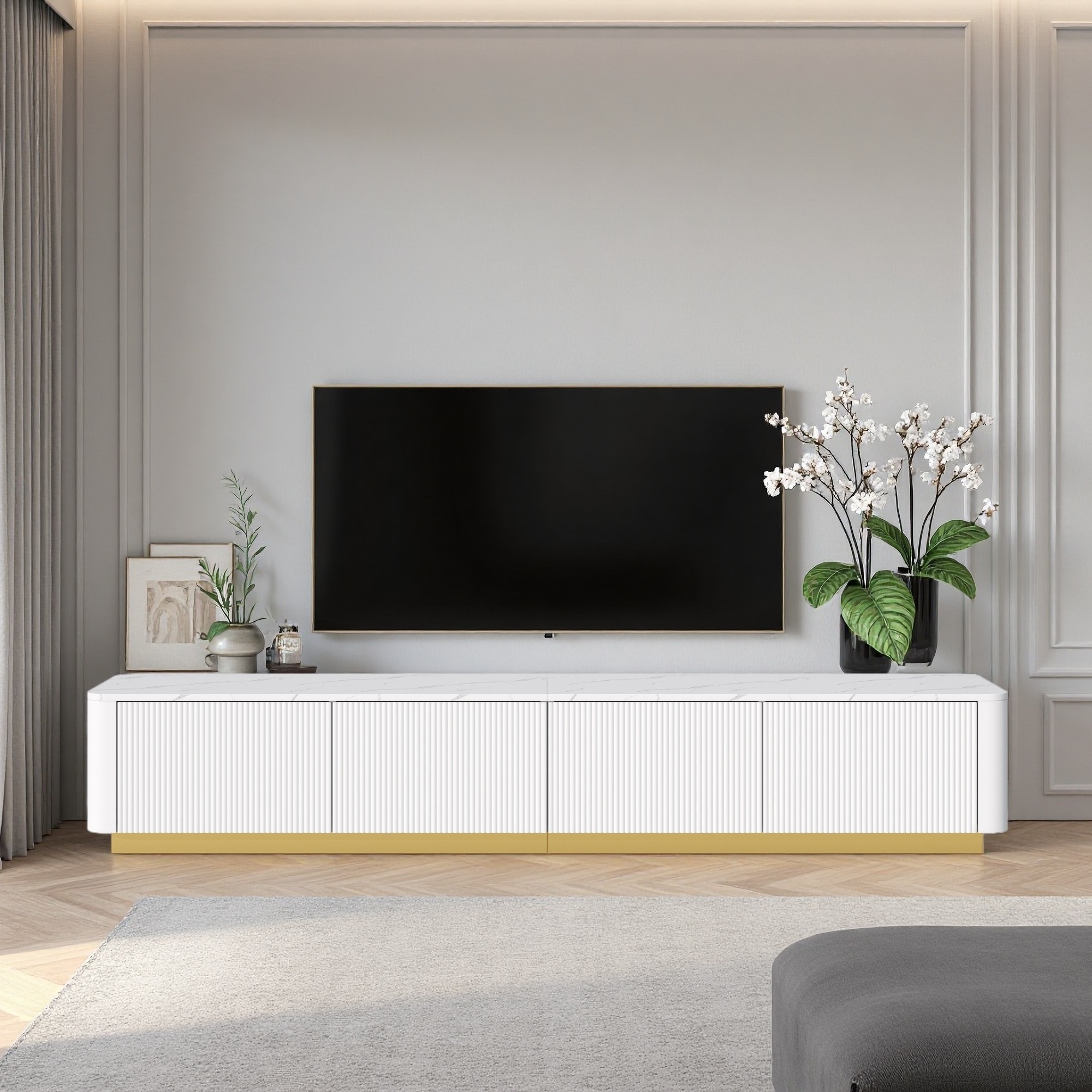 78.7" TV Stand with 4-Drawer and Gold Base, Modern Luxury Aesthetic for Living Room or Entryway