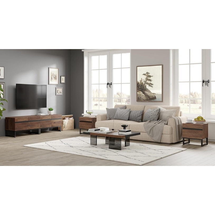 WYNDENHALL Mitchell SOLID WOOD 72 inch Wide Modern Industrial TV Media Stand For TVs up to 80 inches