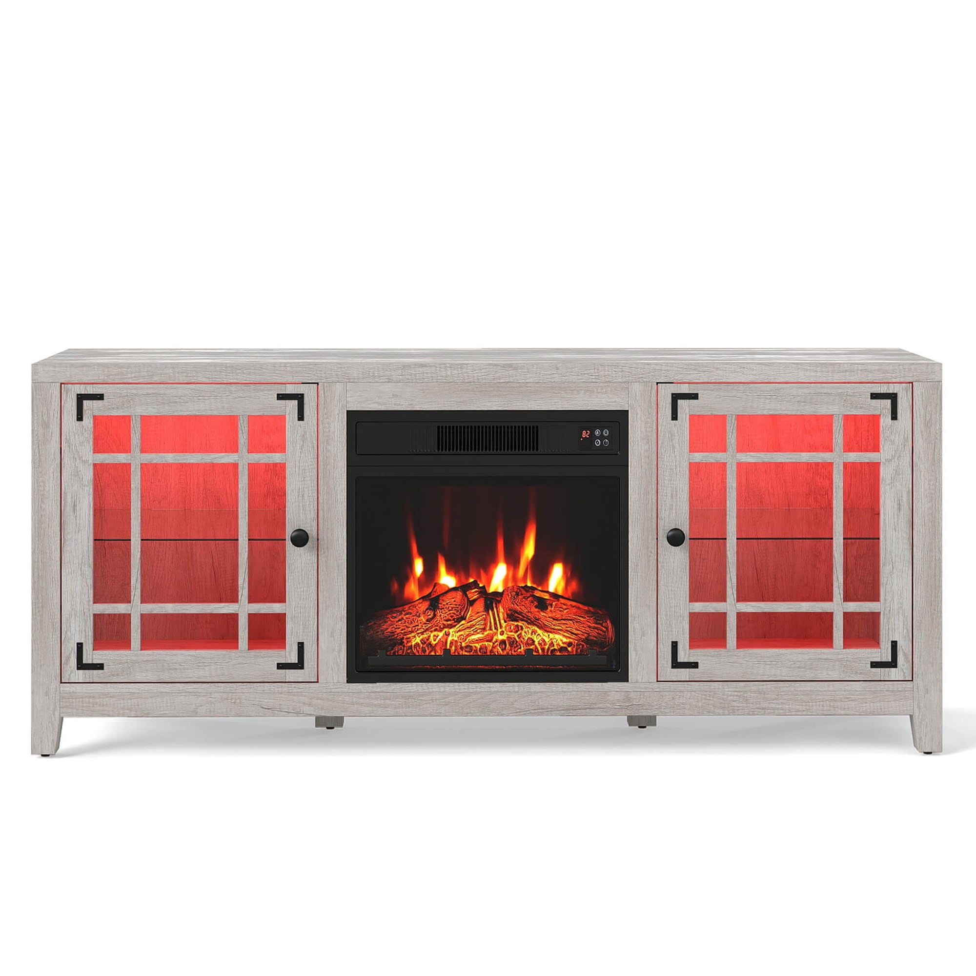 58" LED Fireplace TV Stand w/Storage Cabinets & Adjustable Shelves