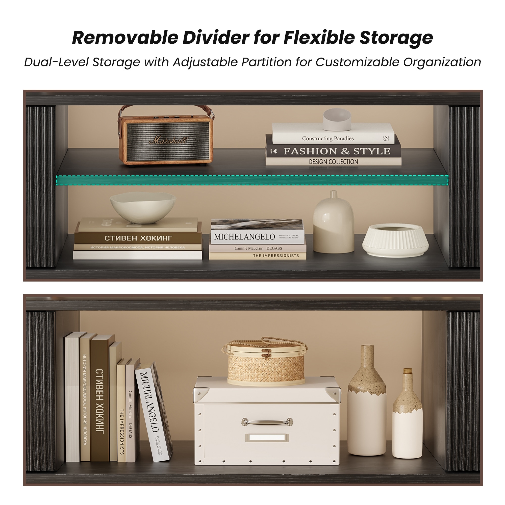 Retro TV Stand, Multifunctional Storage Cabinet, for 65+ Inch TVs with Adjustable Shelves, for Living Rooms