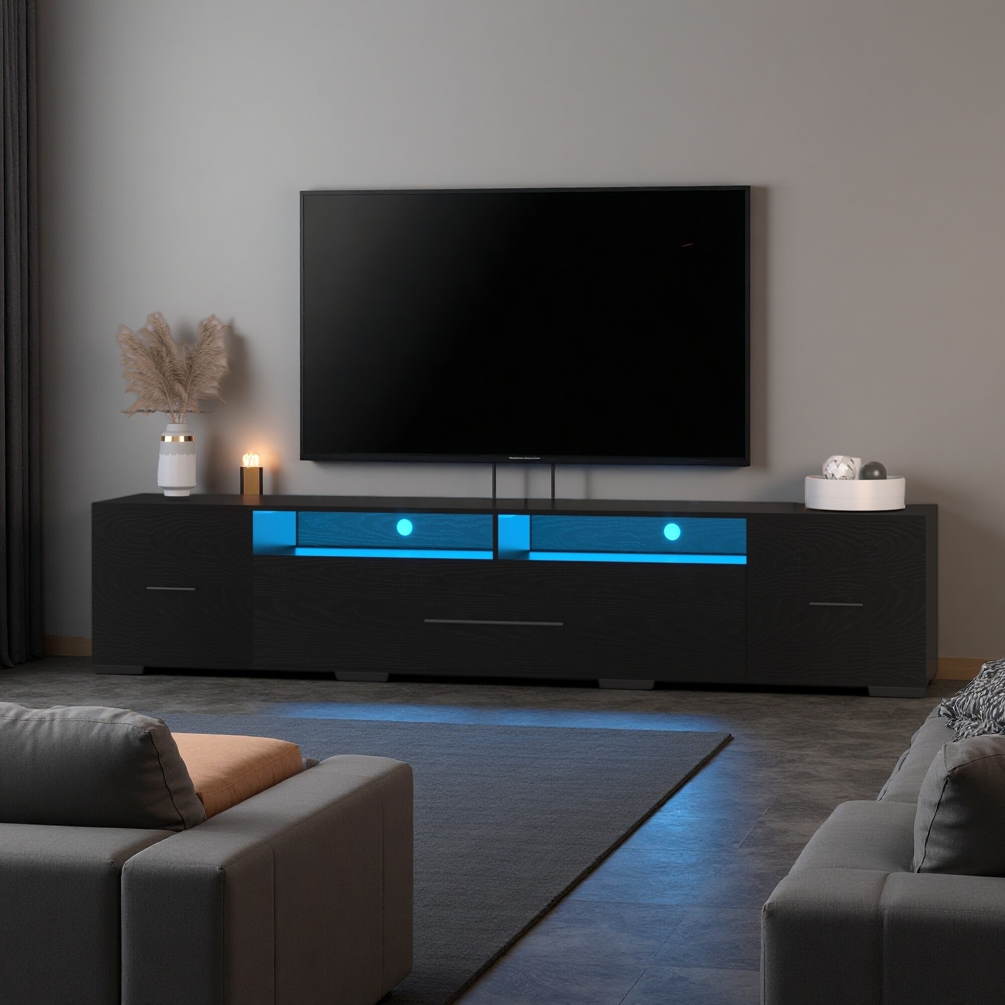80" Particleboard Modern Black TV Stand with RGB LED Lights & Storage