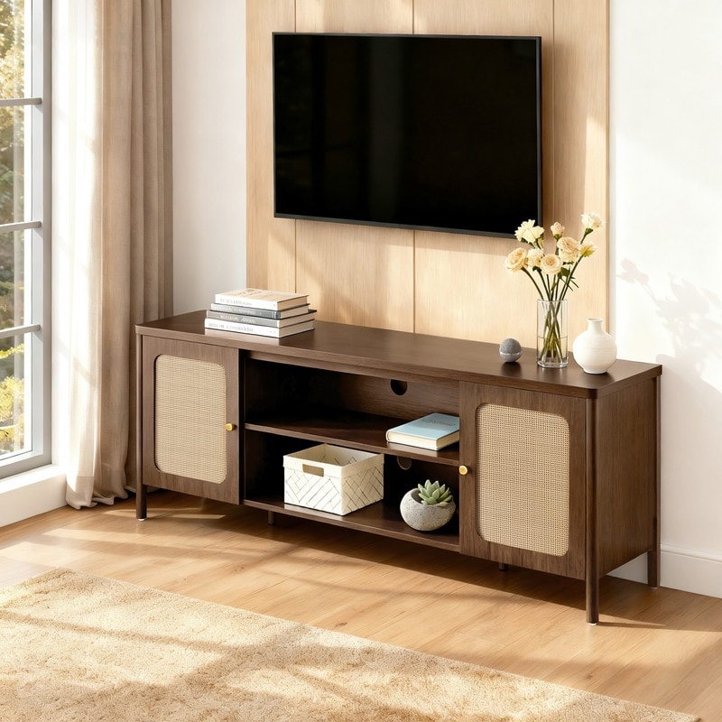 Charming Wood TV Stand with Storage and Stylish Finish for Living Room