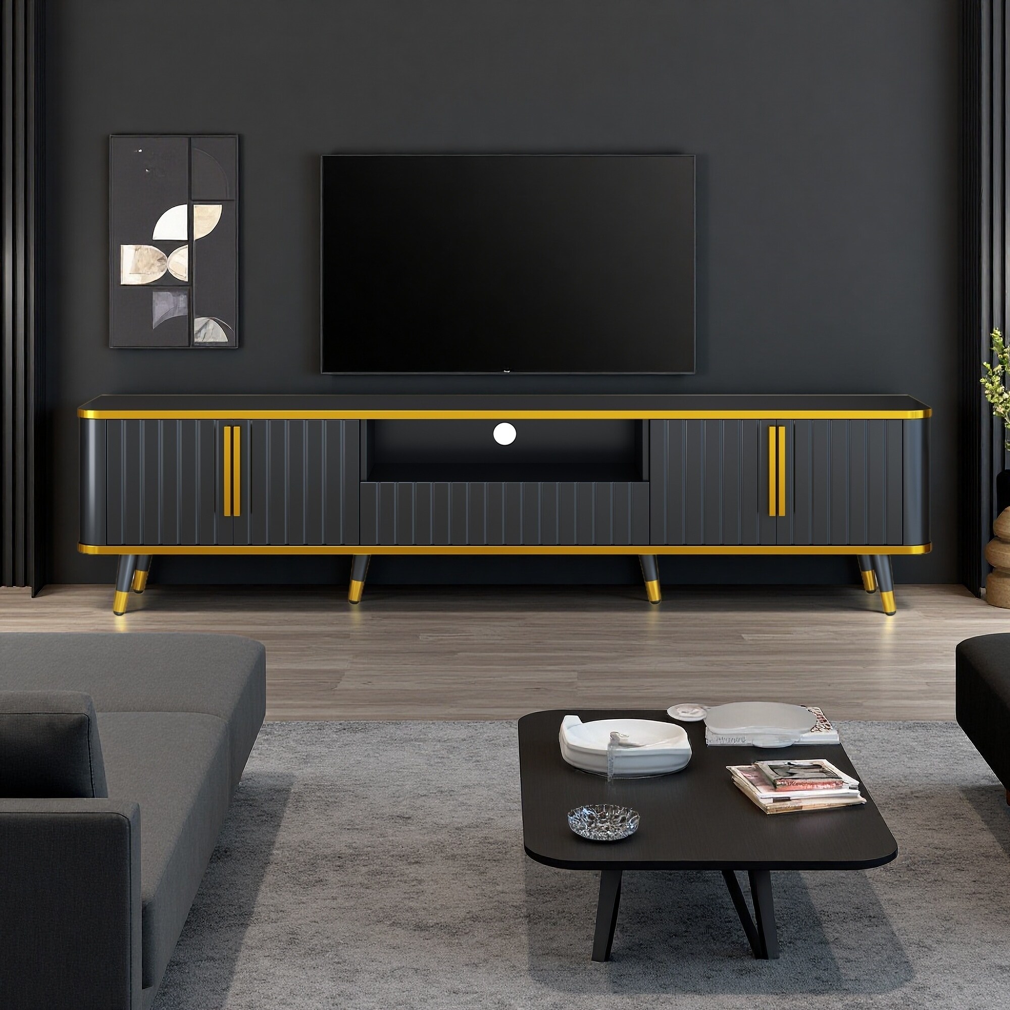 78.8" Minimalism TV Stand with Open Storage Shelf, Sideboard with Cabinets and Unique Golden Iron Legs
