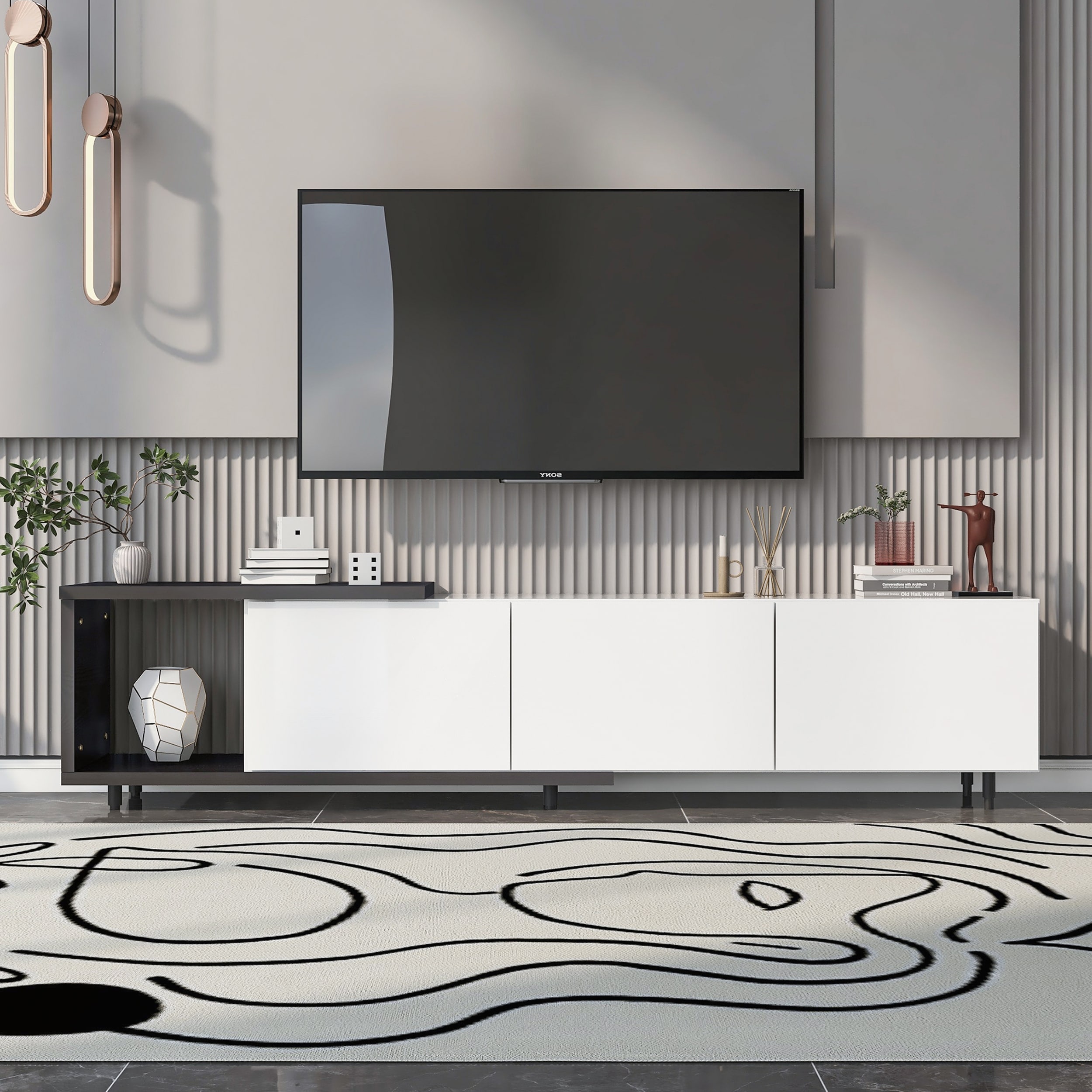 Modern Adjustable TV Stand with Spacious Storage, Sleek Black and White Design for Large Screens and Living Room Organization