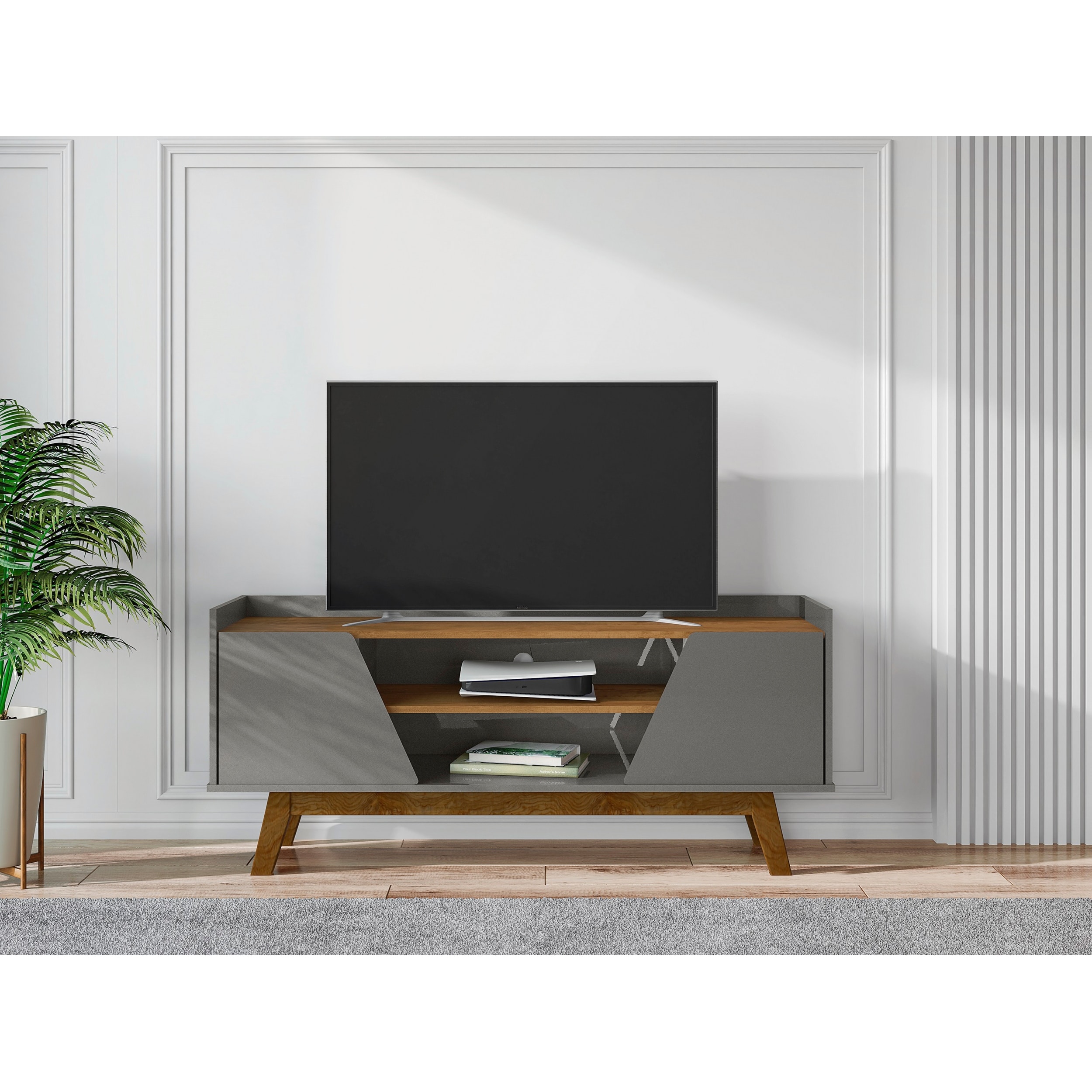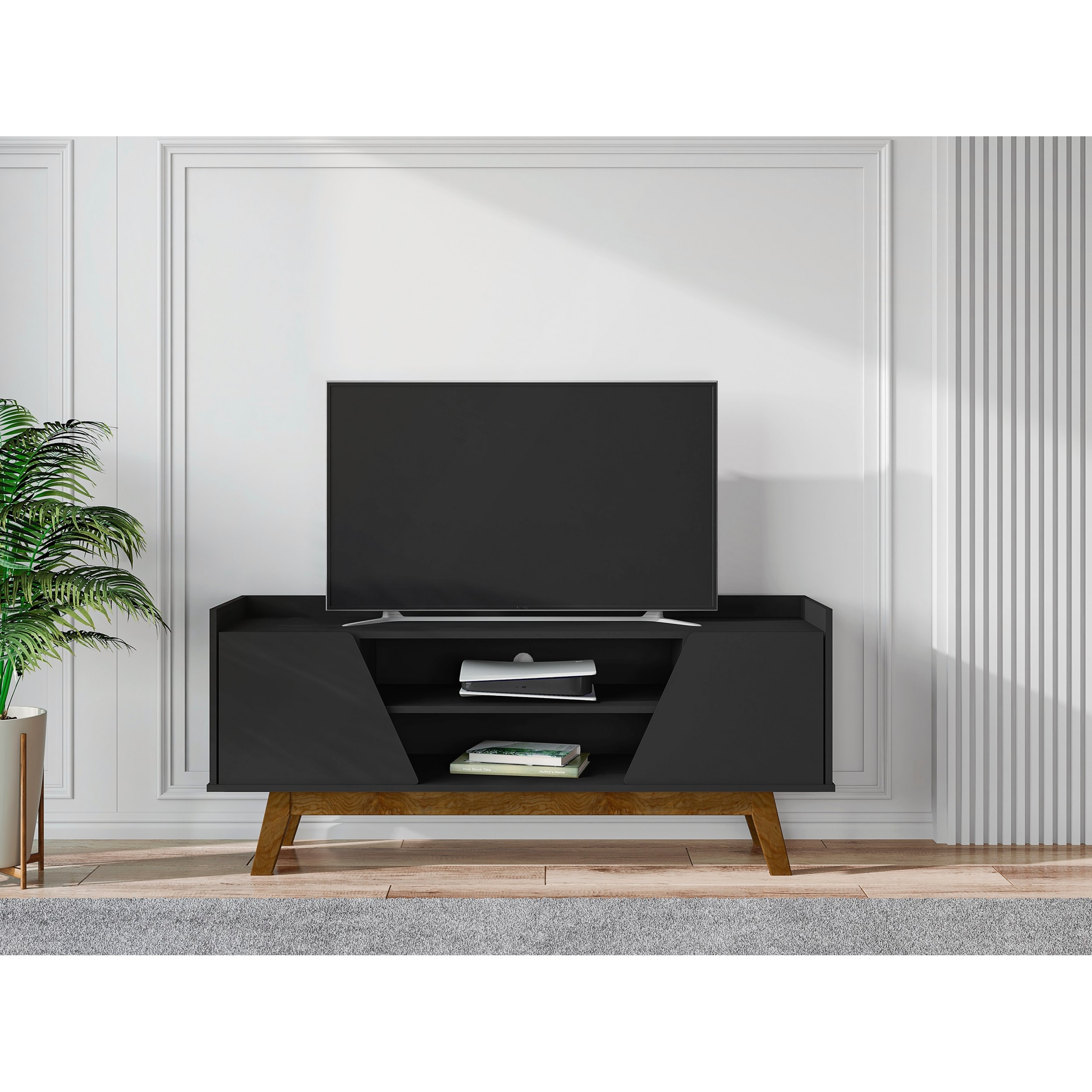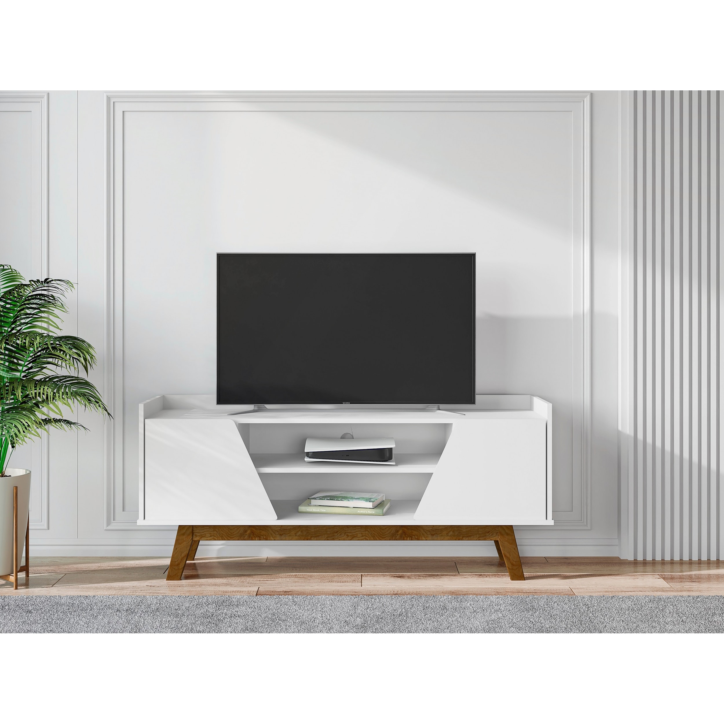 Mid-Century Modern Free Standing TV Stand with Cable Management and Soft Close Doors for Living Room and Bedroom