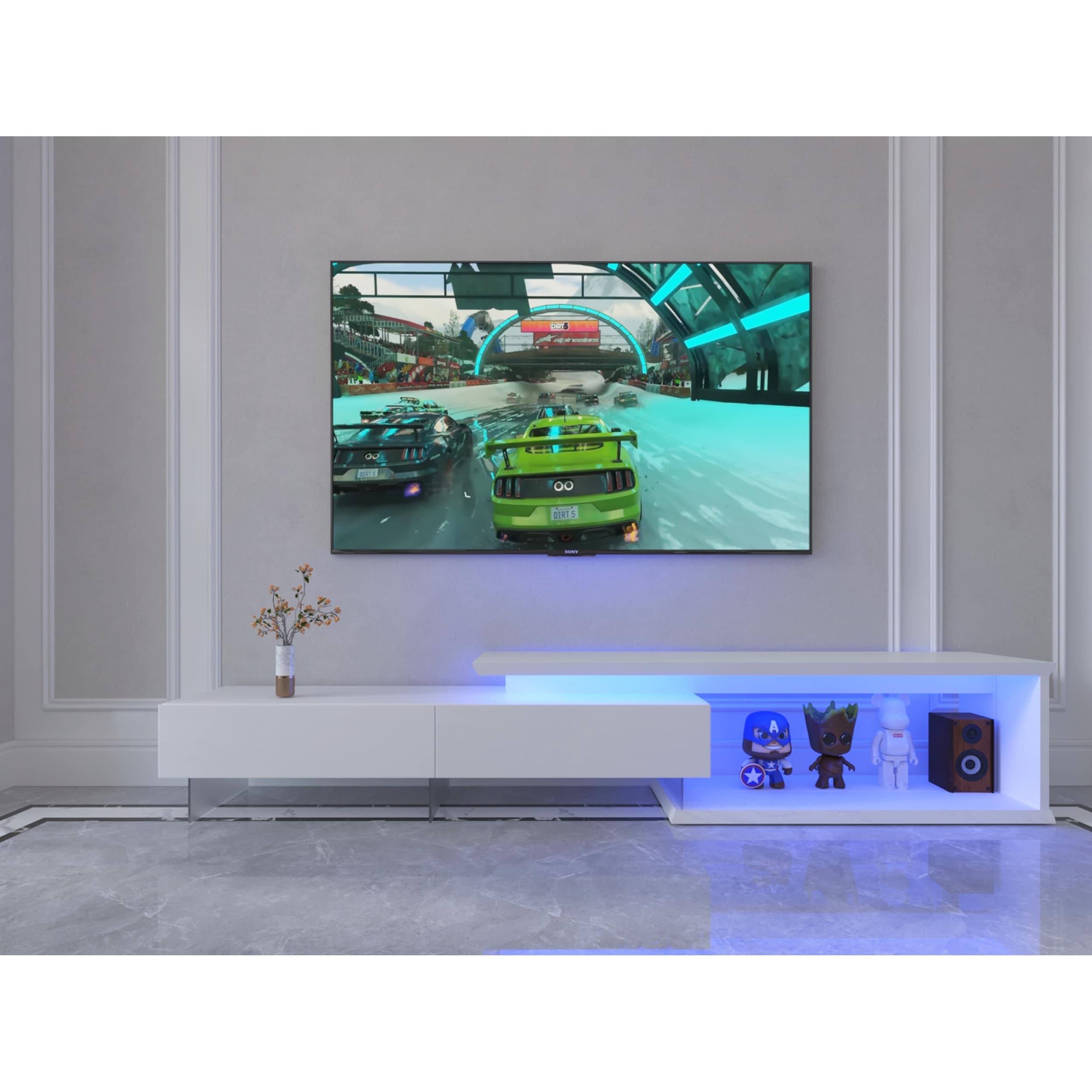 Clihome 67" White Floating LED TV Stand - Wall-Mounted, Fits 55-65" TVs