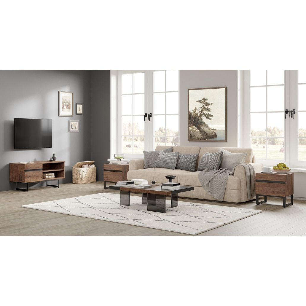WAMPAT Living Room Table Sets,70 Inch TV Stand, Square Coffee Table, 2 End Table