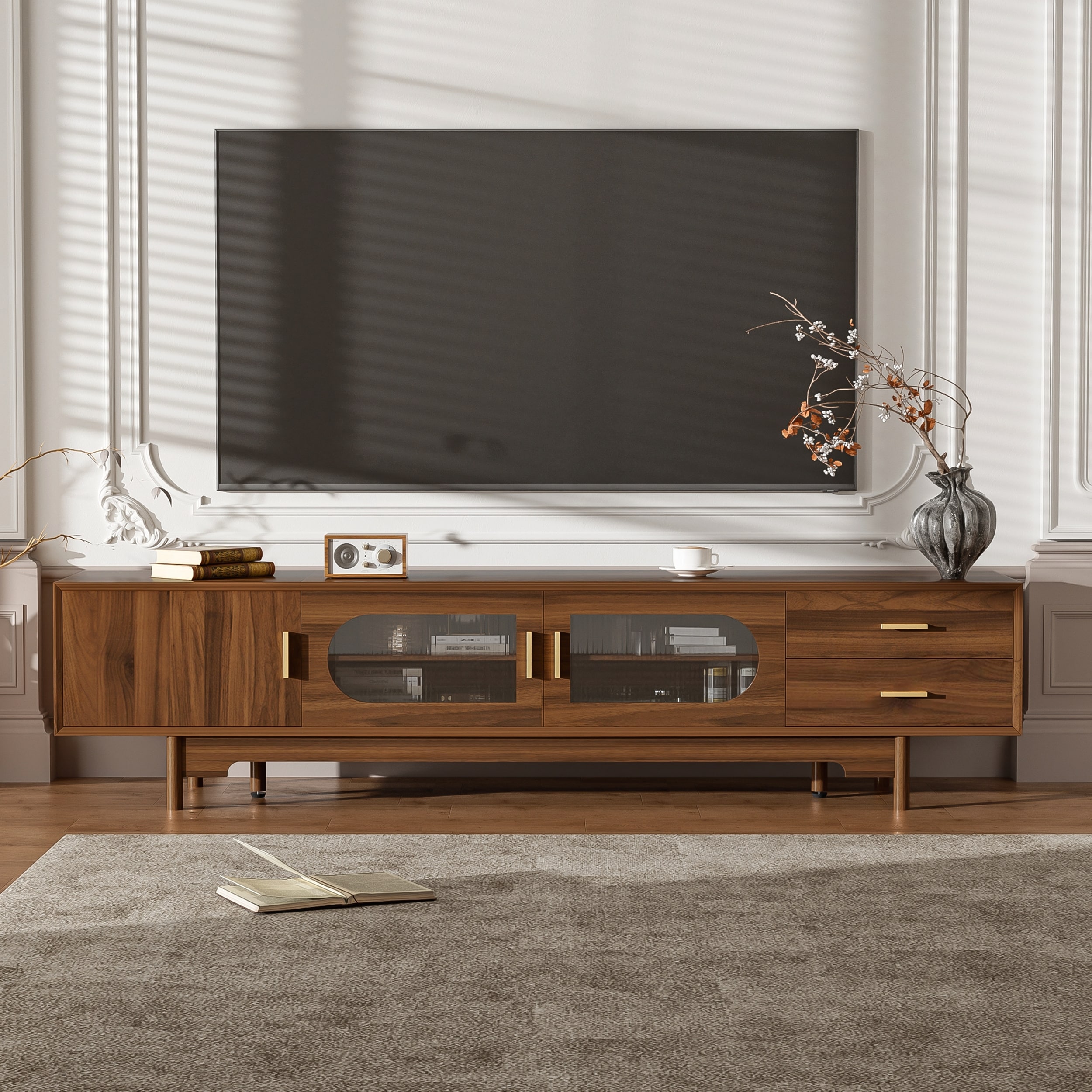 78 Inch TV Stand with Fluted Glass Doors and 2 Drawers for TVs Up to 85 Inches