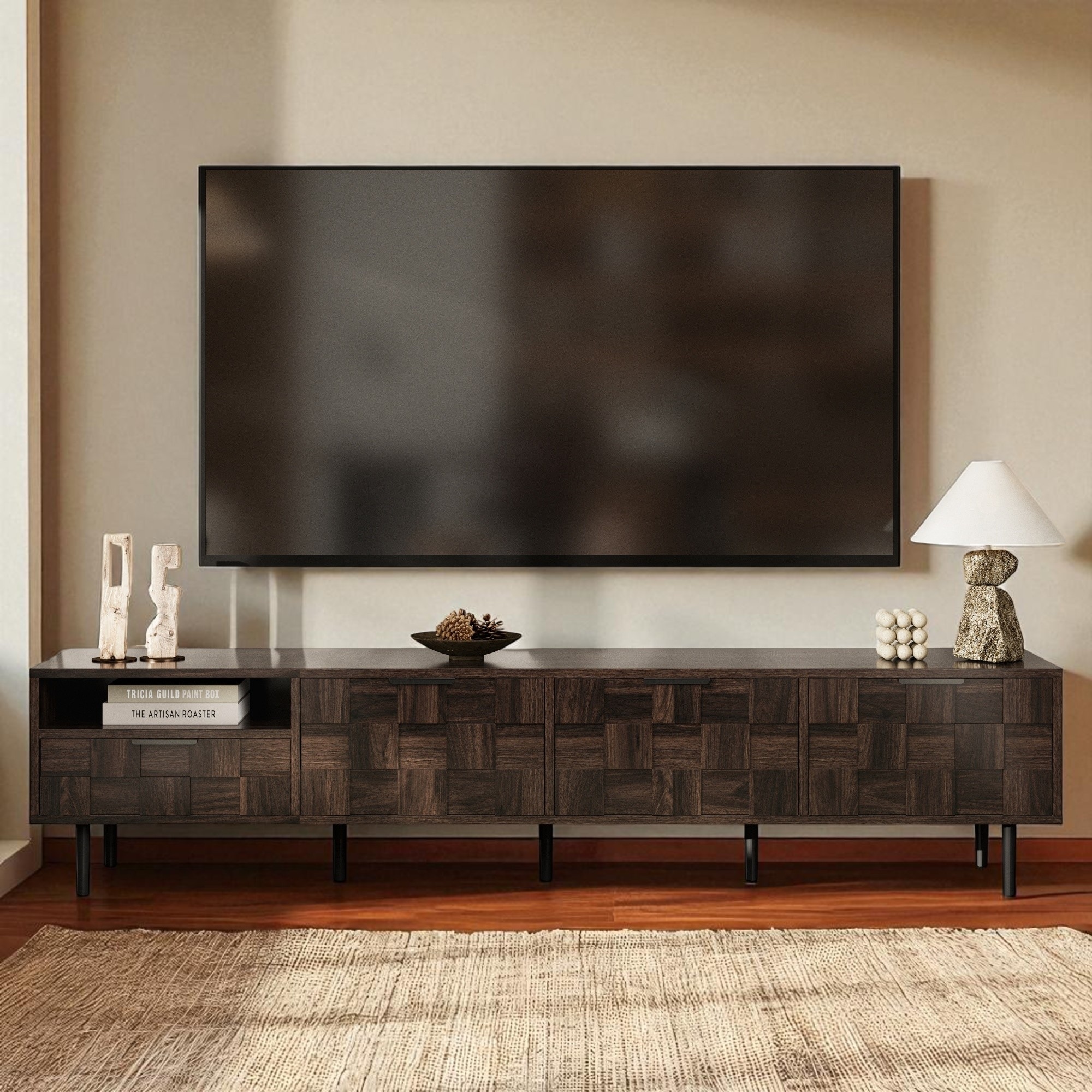78 Inch Mid Century Modern TV Stand for TVs Up to 85 Inch, Entertainment Center with 3 Cabinets, Drawer and Open Shelf Storage