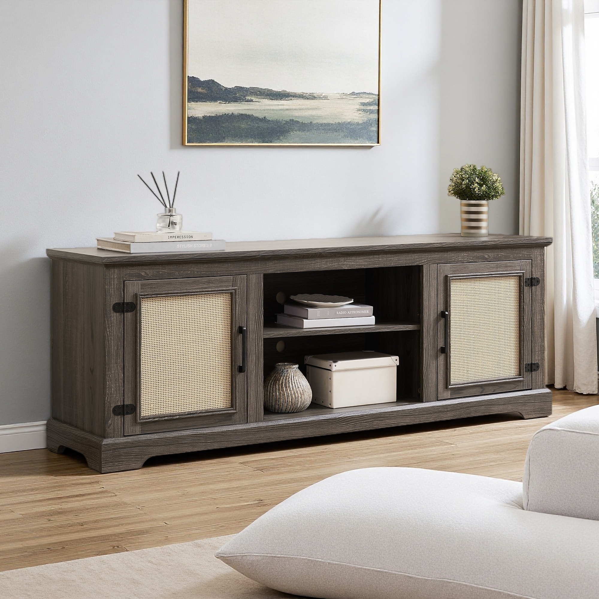 65" Farmhouse TV Stand Console for TVs up to 70", TV Console Table with 2 Open Shelves and 2 Door Cabinets for Storage