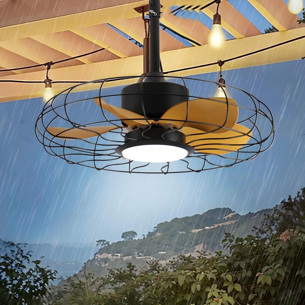 52" Industrial Black Caged Ceiling Fan with Light and Remote 6-Speed Reversible Timer DC Motor - 52inch