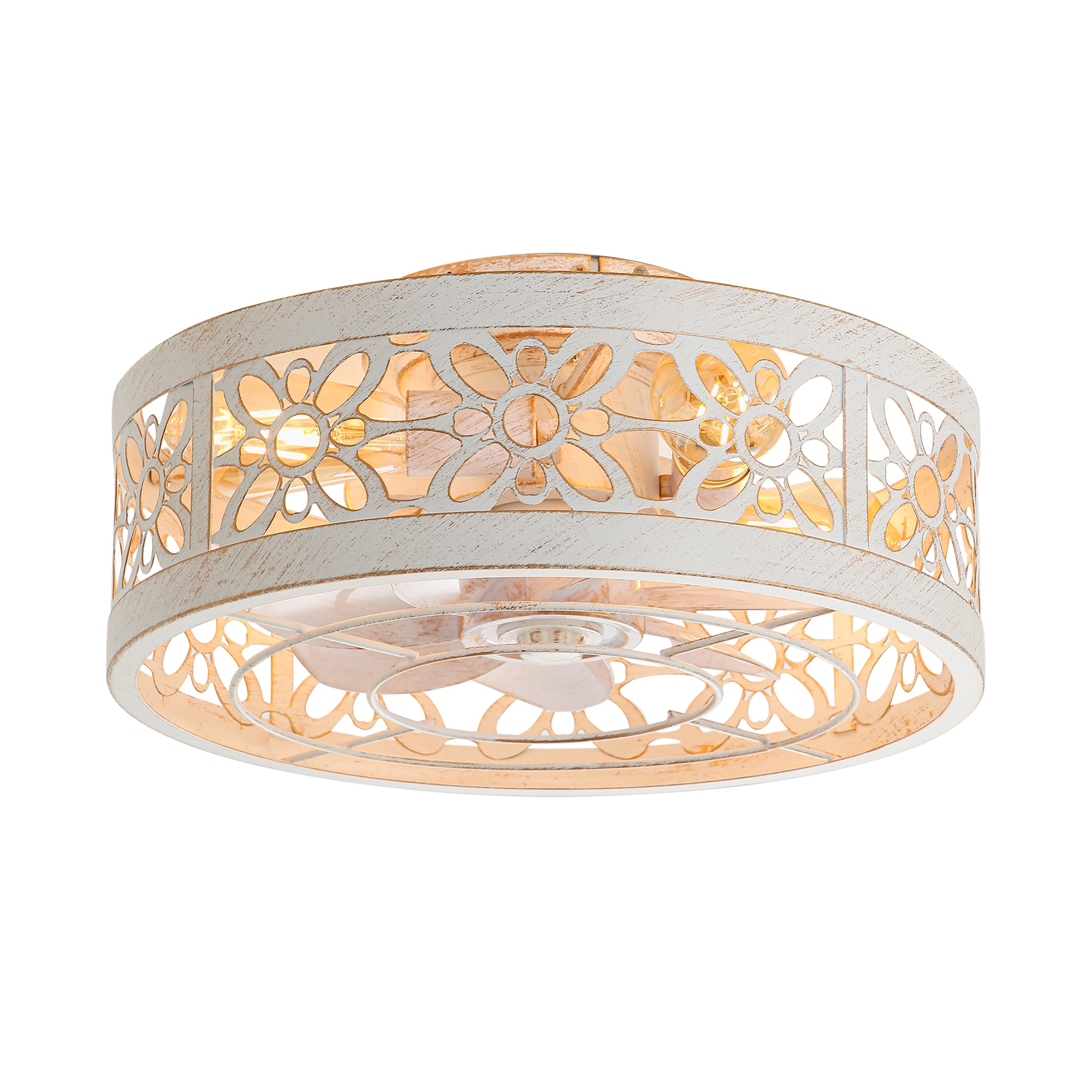16.5" Caged Ceiling Fan with Light, Rustic Flush Mount, 7 ABS Blades, 6-Speed Reversible DC Motor, Remote Control
