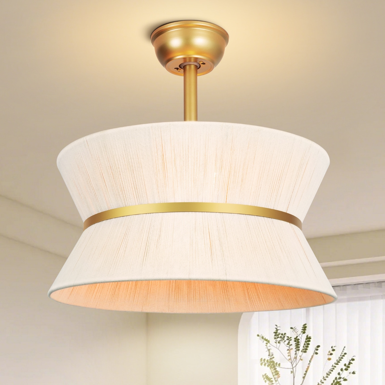20 in. Indoor Gold Boho Ceiling Fan with Light and Remote, Light beige fine cotton thread Downroad Mount Fandelier for Bedroom