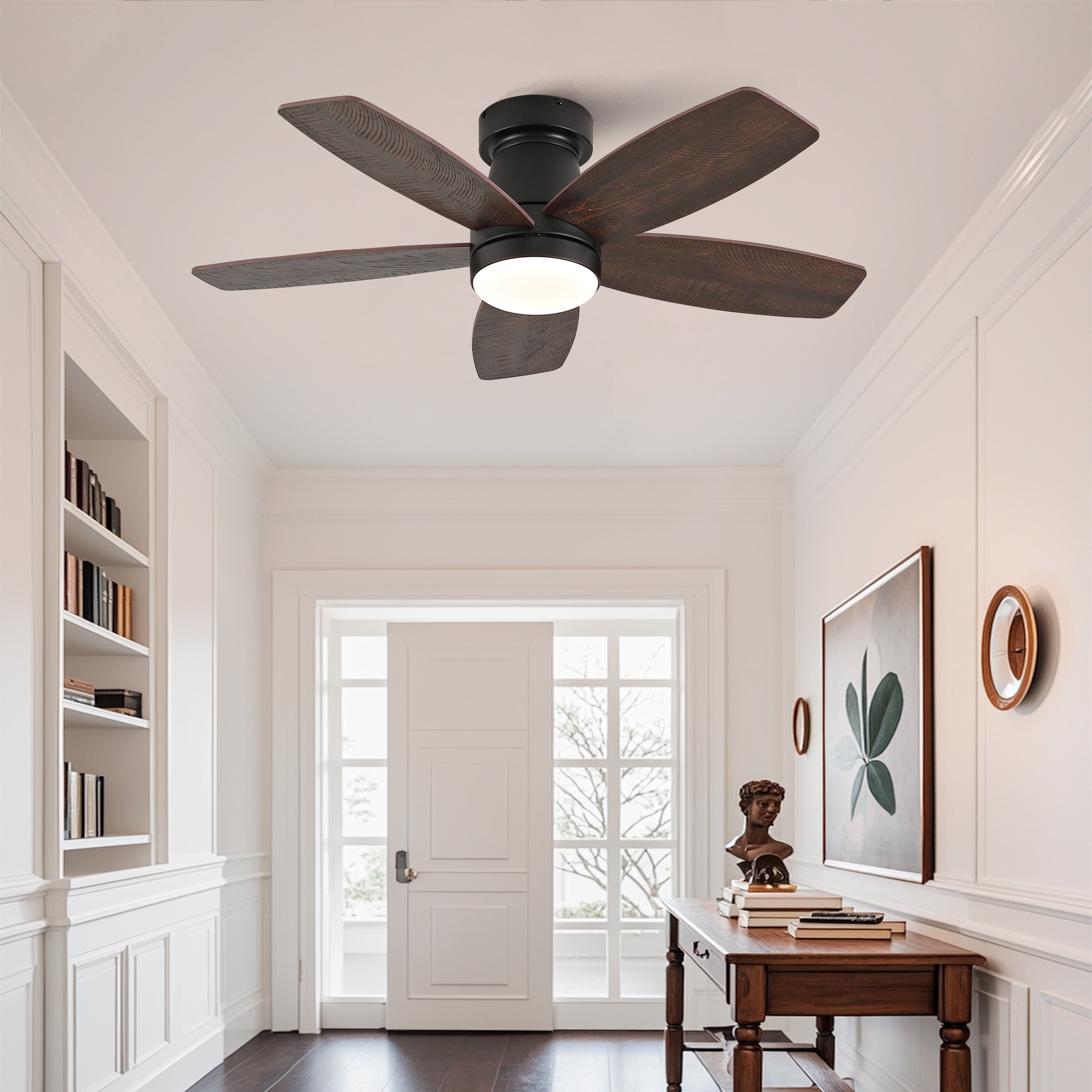 Flush Mount Ceiling Fan with Dimmable LED & Remote