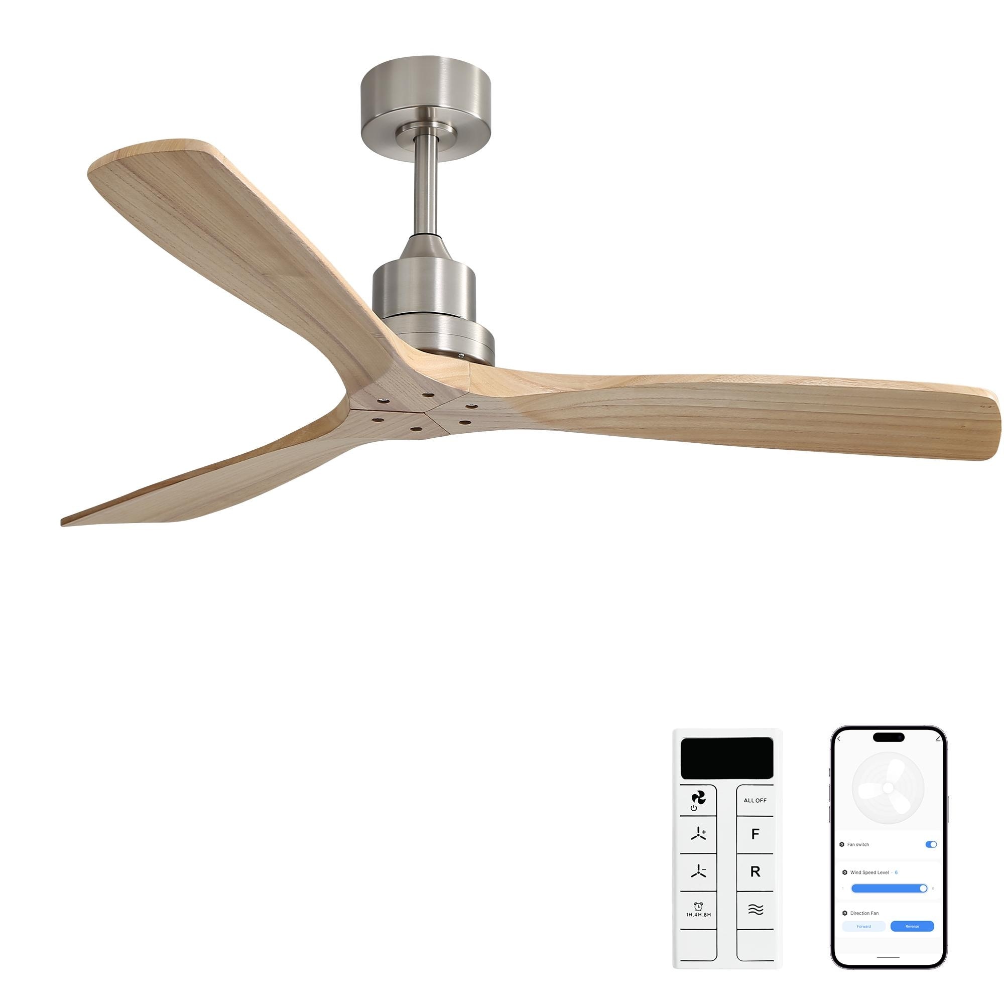 52 Inch Smart DC Ceiling Fan with 3 Natural Wood Blades Reversible Silent Motor and 1H/4H/8H Timer Function