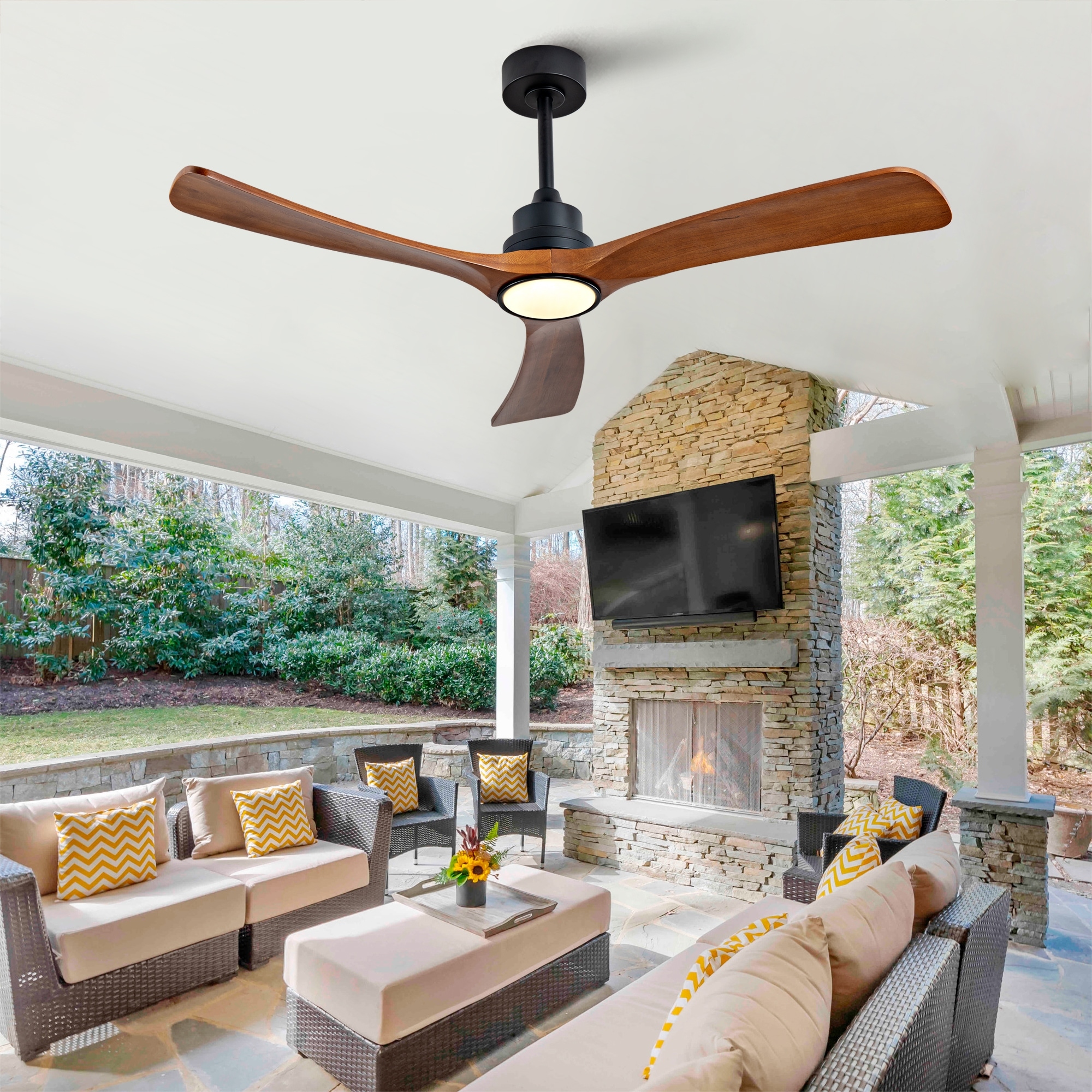 42" Wood Dark Walnut Ceiling Fan with Lights Remote Control
