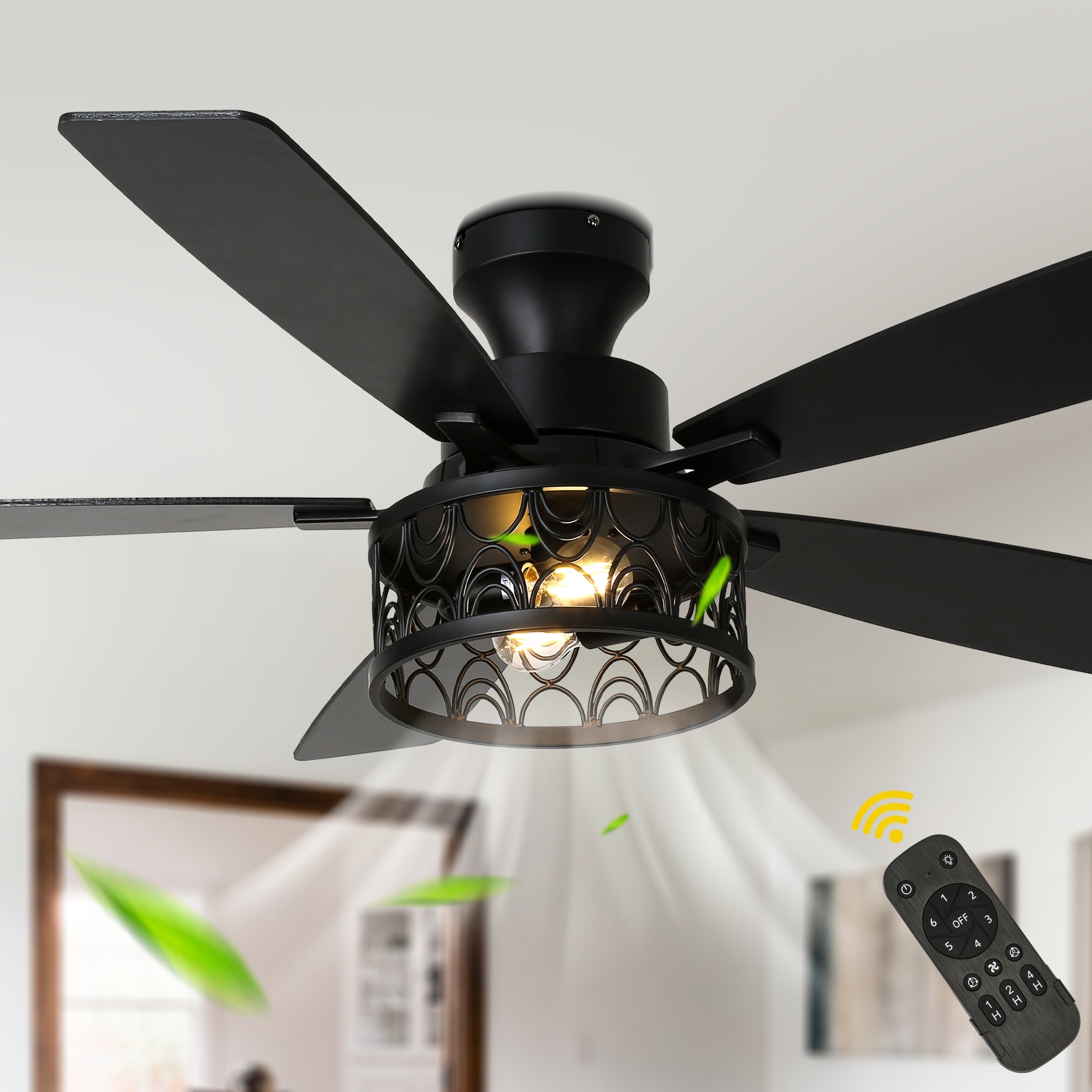 Chichoice 52" Black Flush Mount Ceiling Fan Light with Remote Control, Drum Style, 6-Speed Settings for Living Room