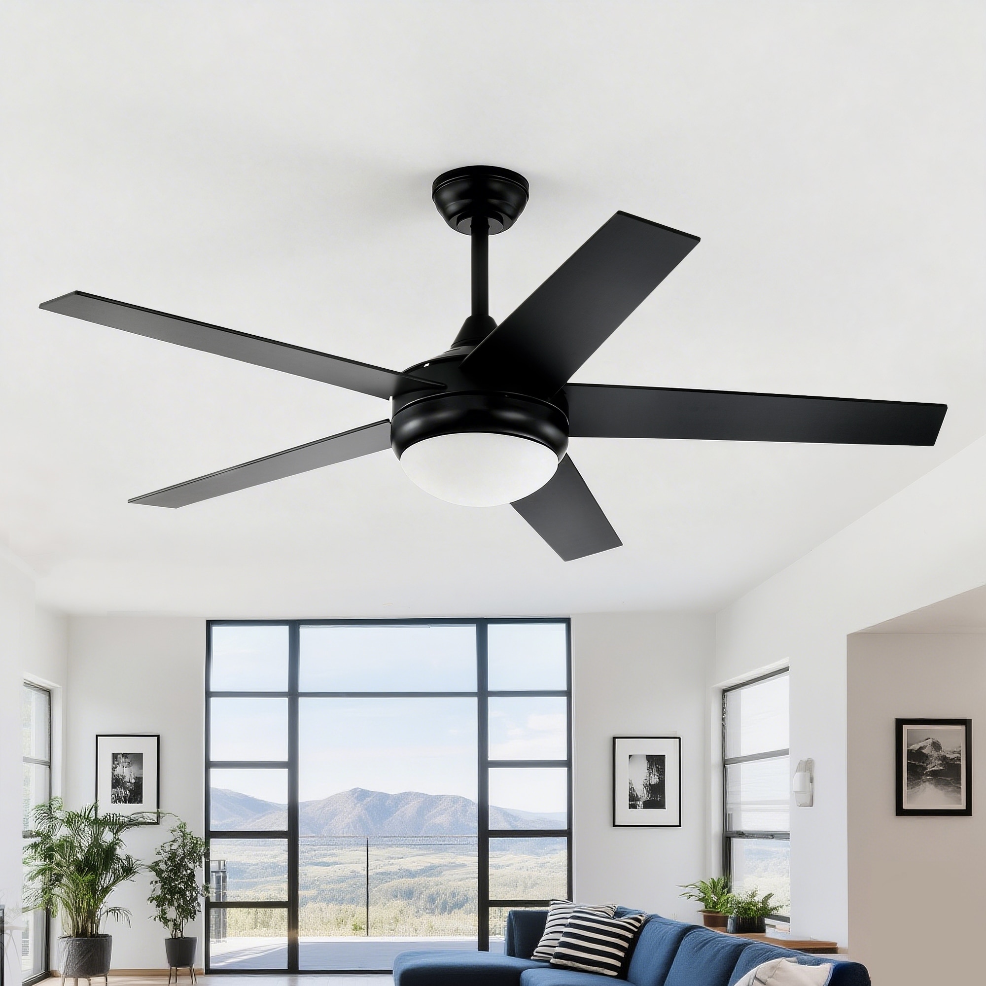Matte Black 52 in. 6-Speed 5-Blade Indoor LED Ceiling Fan with Remote and Wall Control, Reversible DC Motor