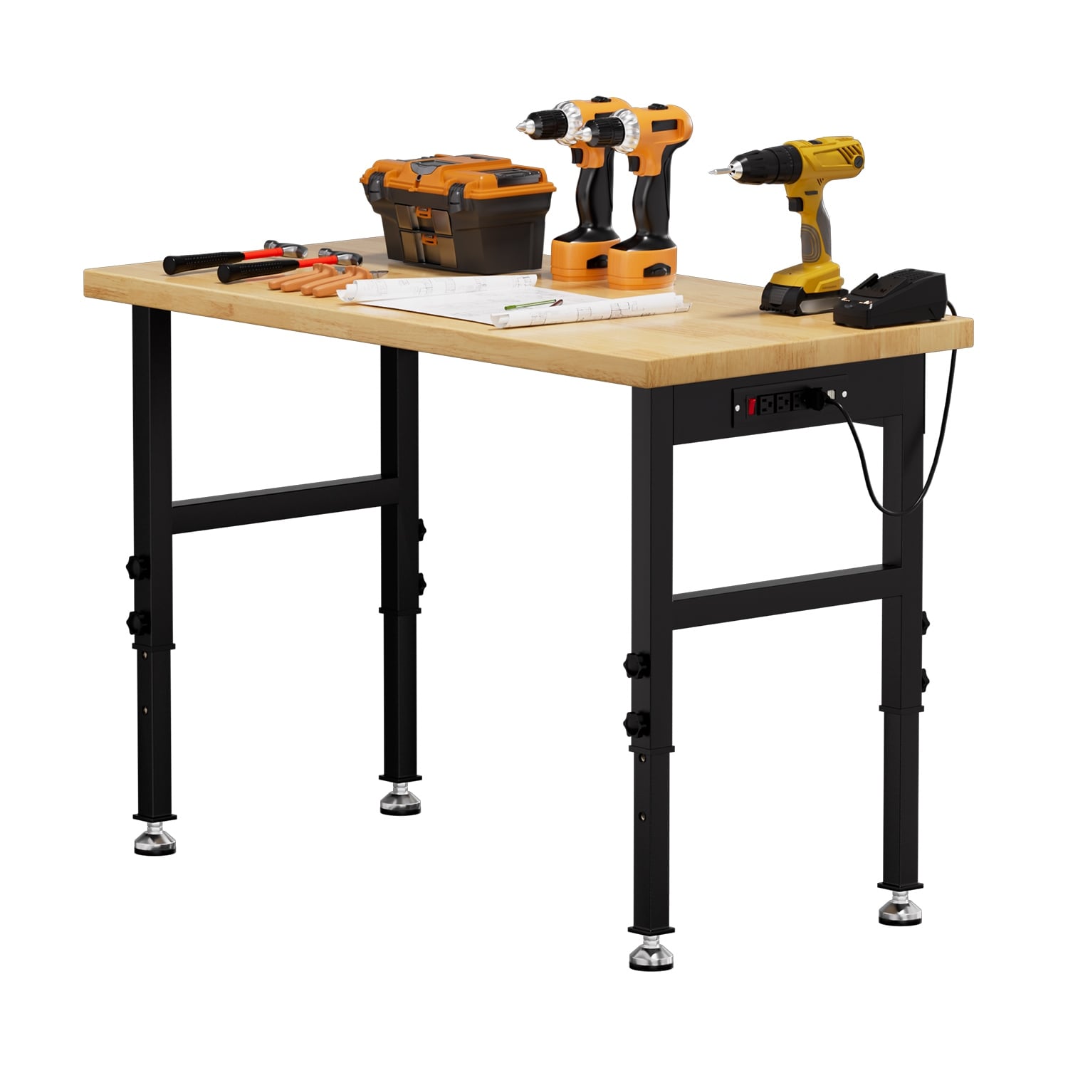 48/60/70” Adjustable Height Heavy-Duty Solid Wood Work Table - N/A