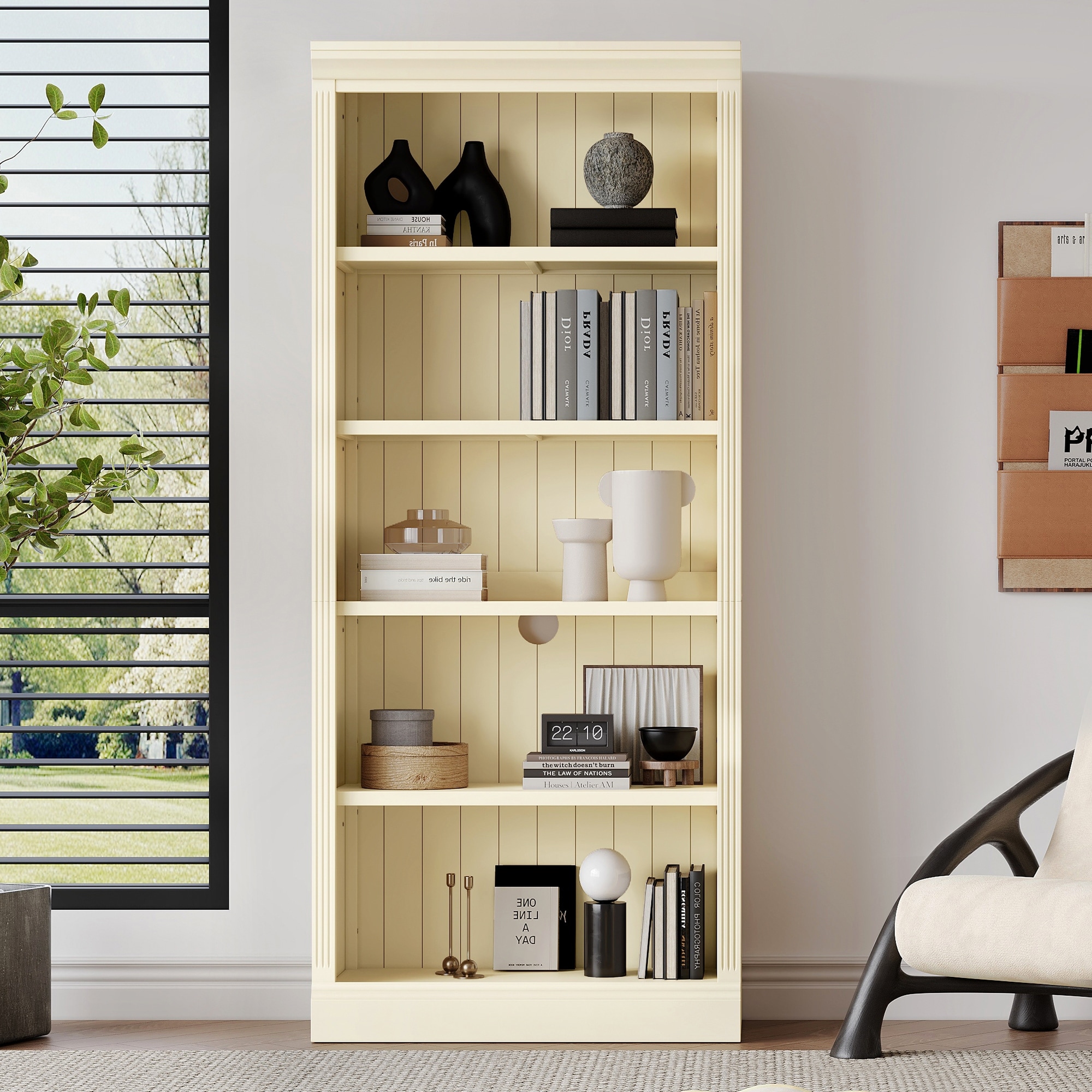 83.4" Tall Wood Bookcase with light strip,5-Tier Decor Bookshelves with Adjustable Shelves,Storage Organizer