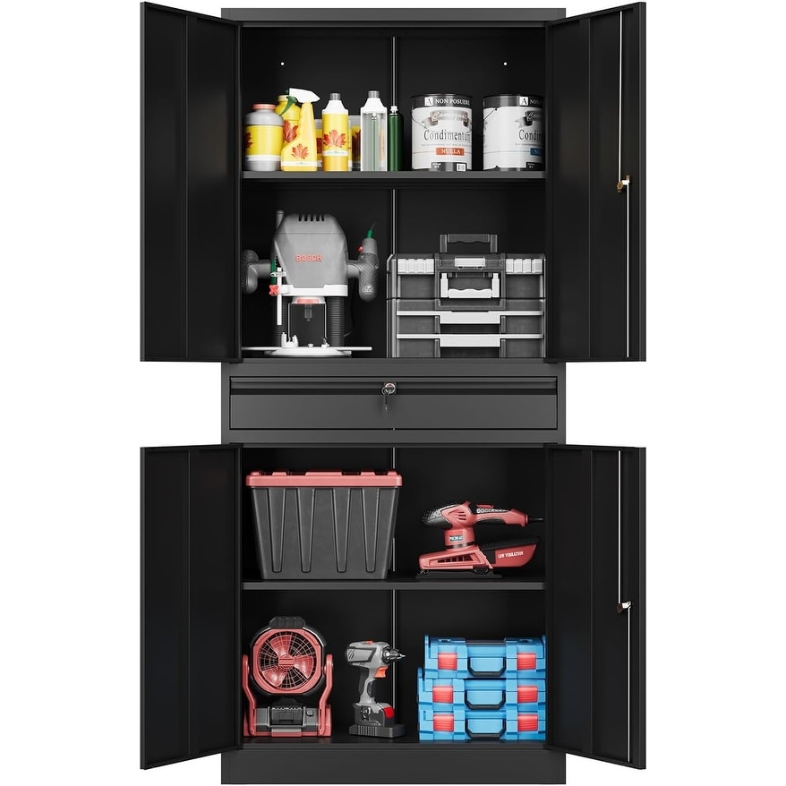 71 Inch Heavy Duty Metal Storage Cabinet with Lockable Doors and Drawers for Garage, Pantry, Warehouse