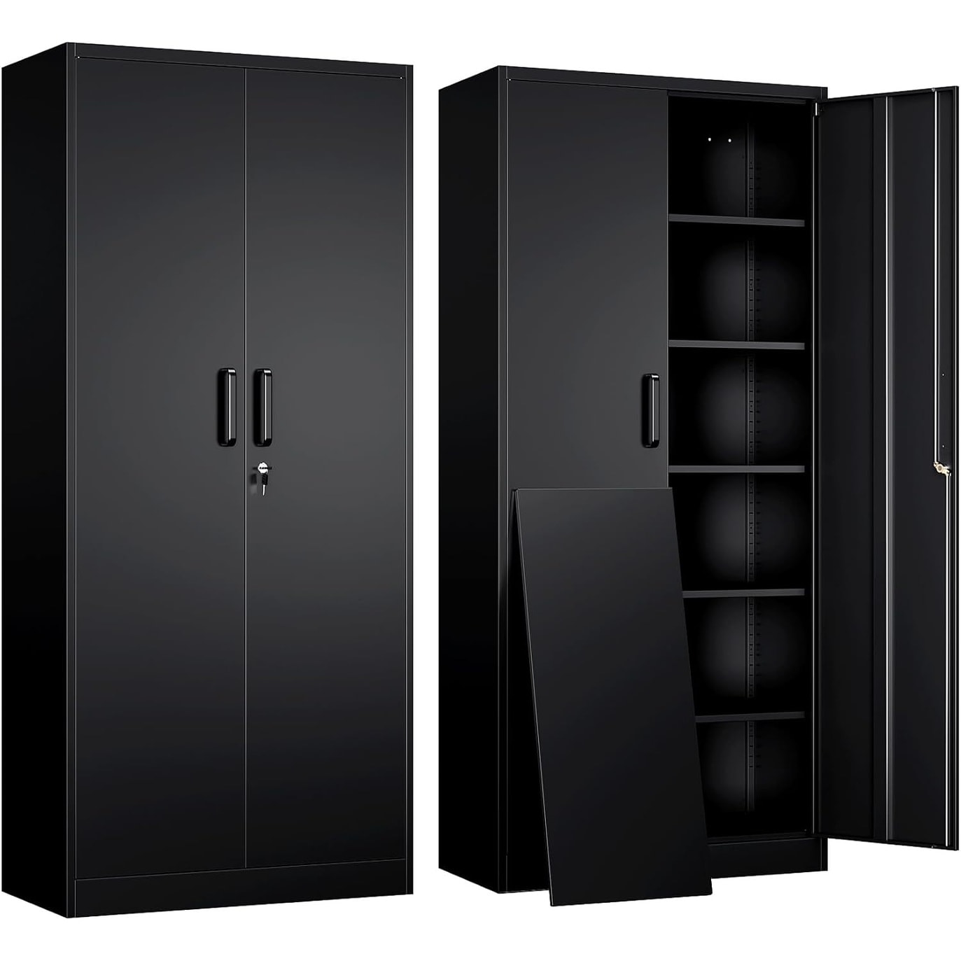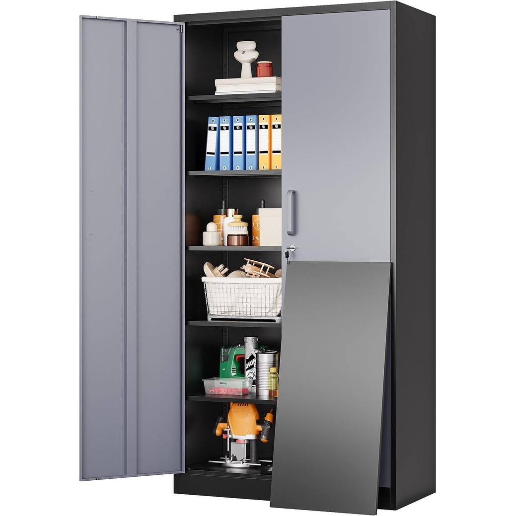 Metal Garage Storage Cabinet, 71in, 2 Doors, 5 Adjustable Shelves, Lockable for Office, Home, Garage, Gym, School