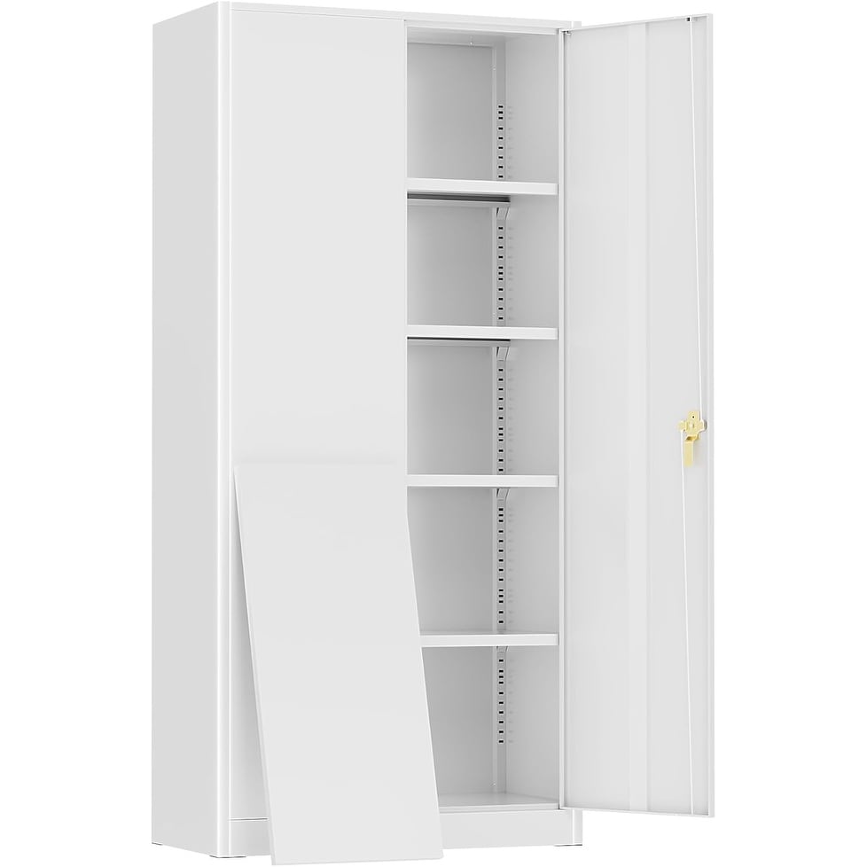 Metal Lockable Storage Cabinet, 72" Tall with 2 Doors and 4 Adjustable Shelves