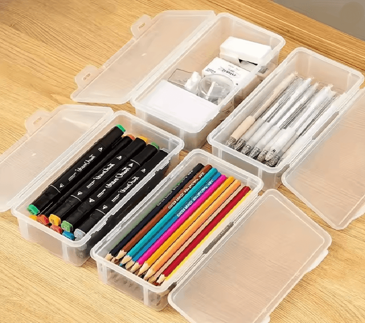 Clear Plastic Storage Box With Hinged Lid 4pcs