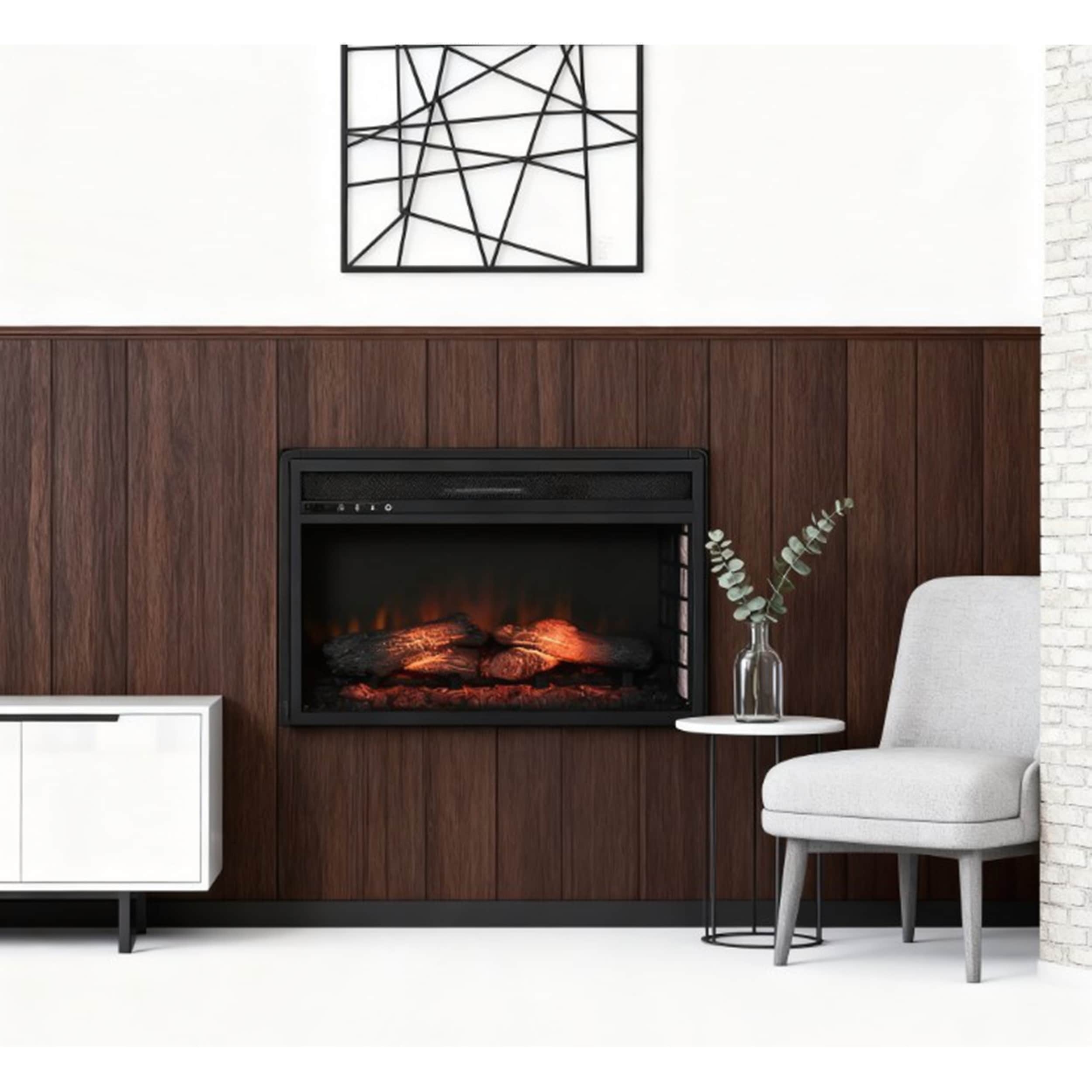 Retro Recessed Electric Fireplace Heater with Realistic Log Flame, Remote Control, and Adjustable Brightness for Cozy Ambiance
