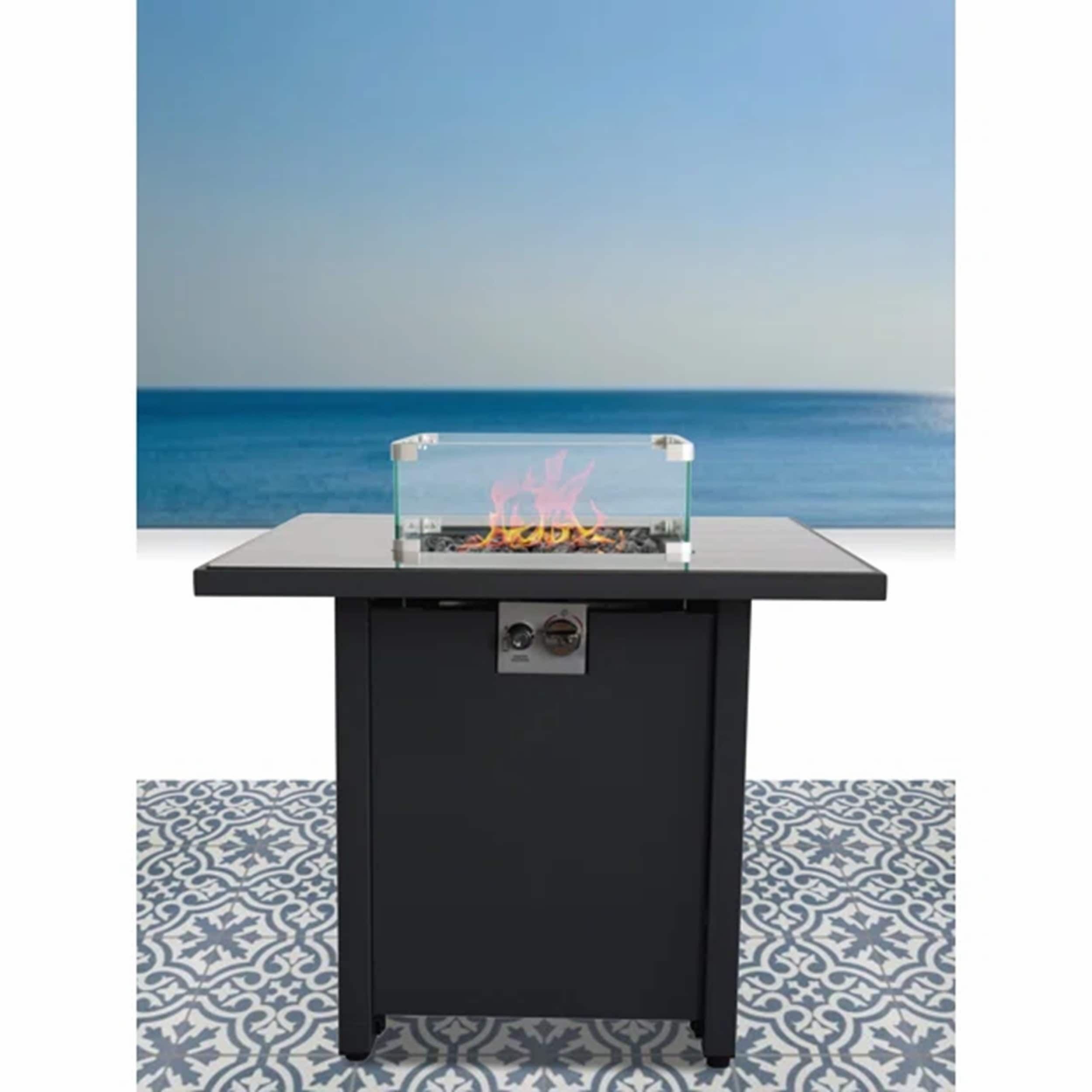 30-Inch Black Powder-Coated Metal Fire Pit with Hidden Propane Tank Compartment for Cozy Outdoor Gatherings and Year-Round Use