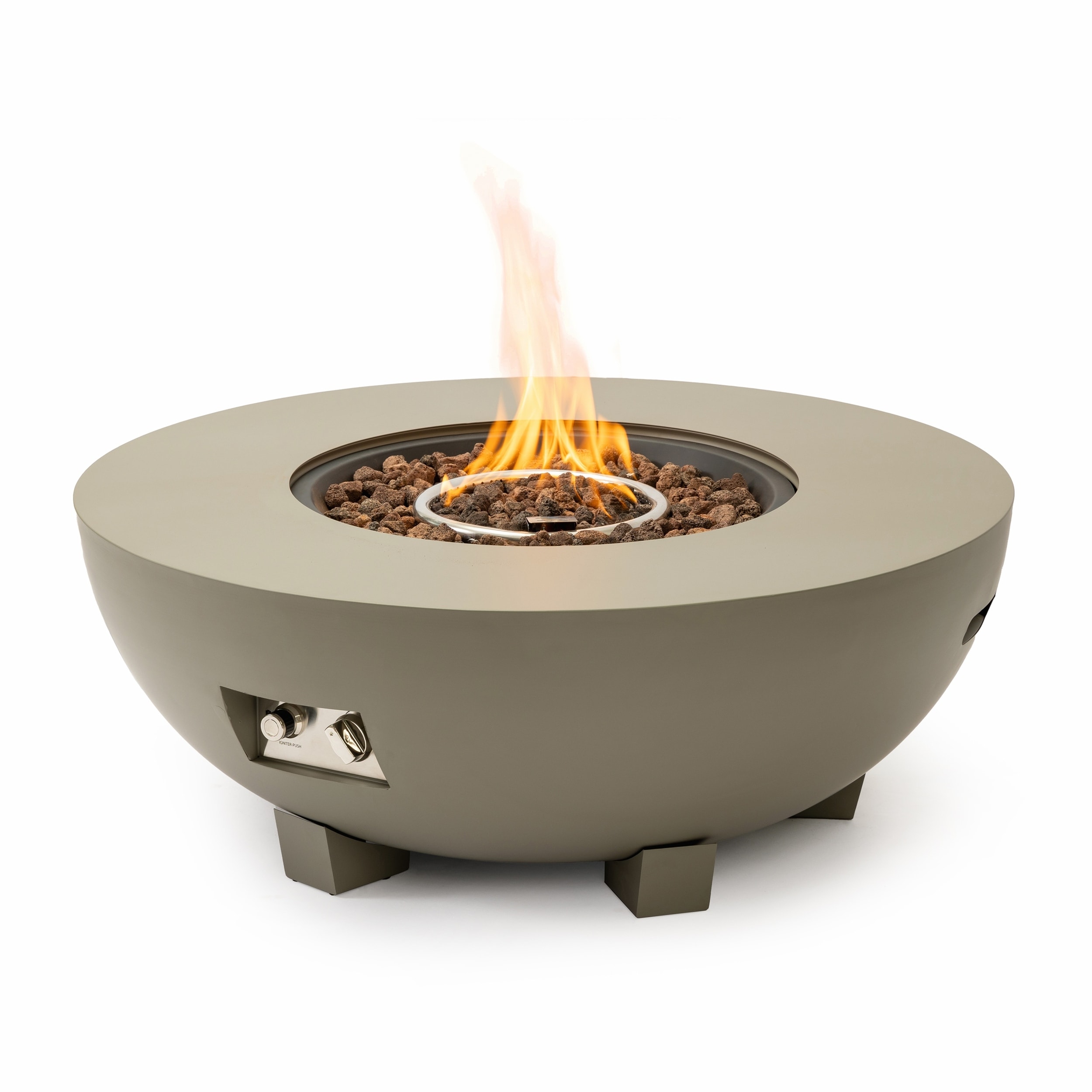 FestaLed 42" Round Iron Outdoor Fire Pit Table with Gas Can Cover, Lid and Glass Draft Shield - N/A