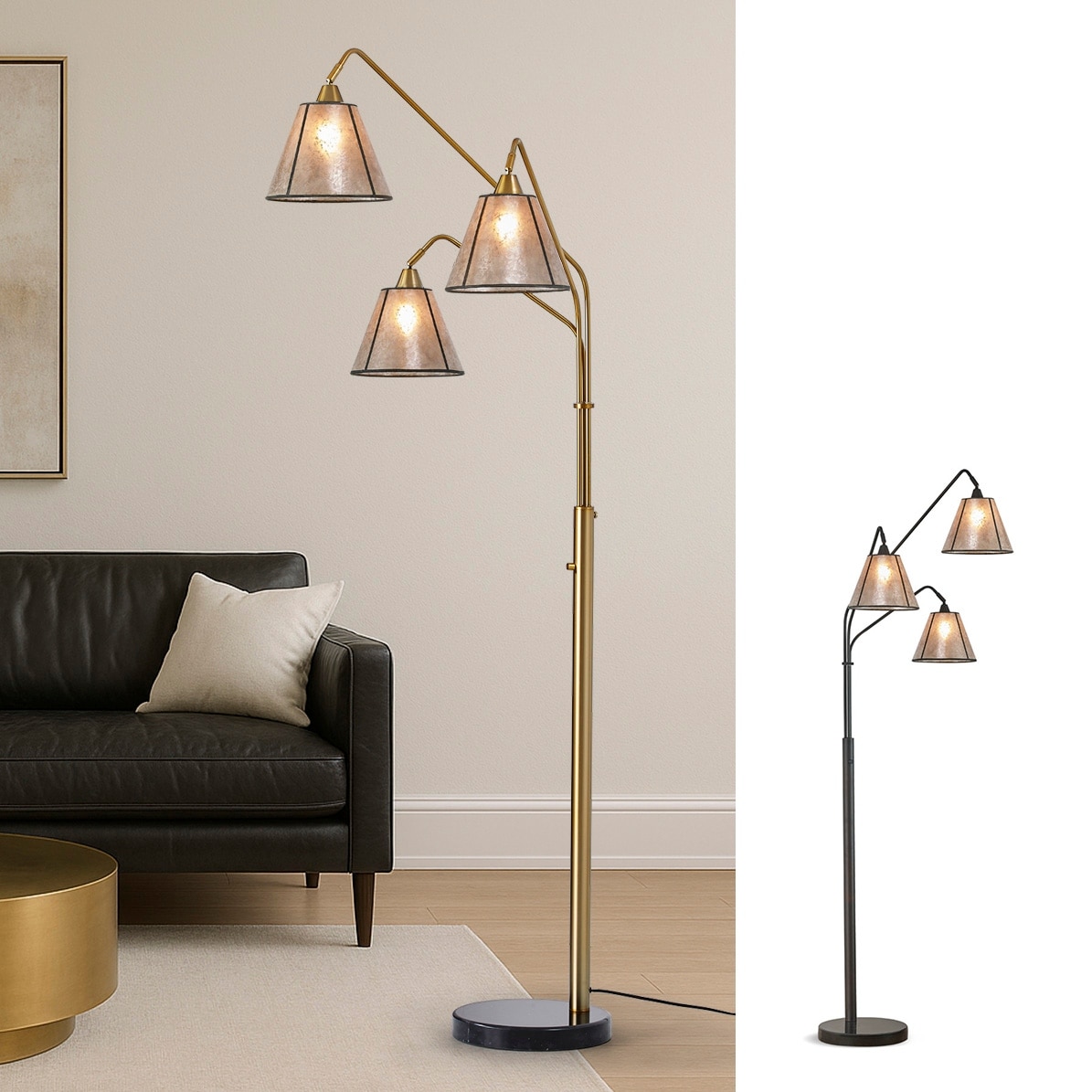 Midtown 3 Light Arch Floor Lamp with Mica Shade