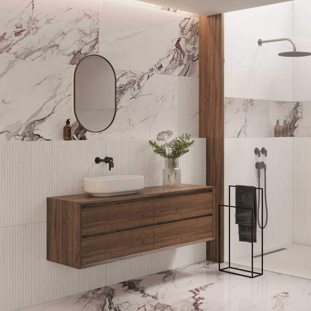 Marqueterie 24x48 Matte Ribbed Porcelain Floor & Wall Tile, Wood-Look