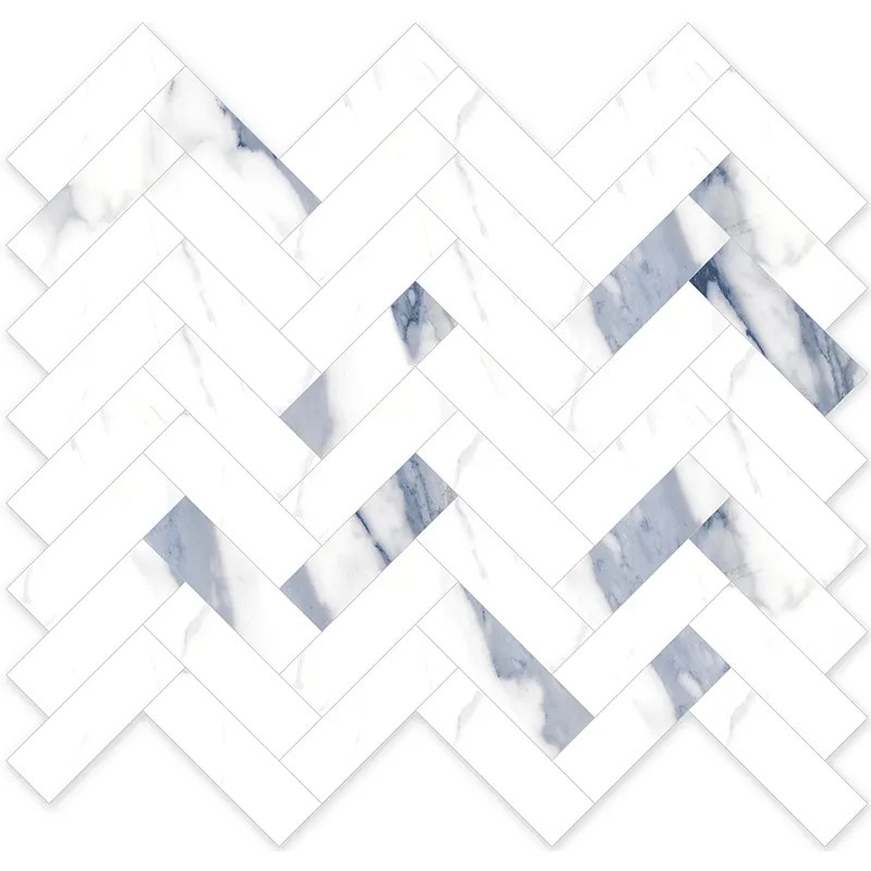 Veneto 11.1 in. x 12.36 in. Polished White with Blue-Gray Porcelain Herringbone Wall and Floor Tile (4.76 sq ft/case) - 5 Sheets