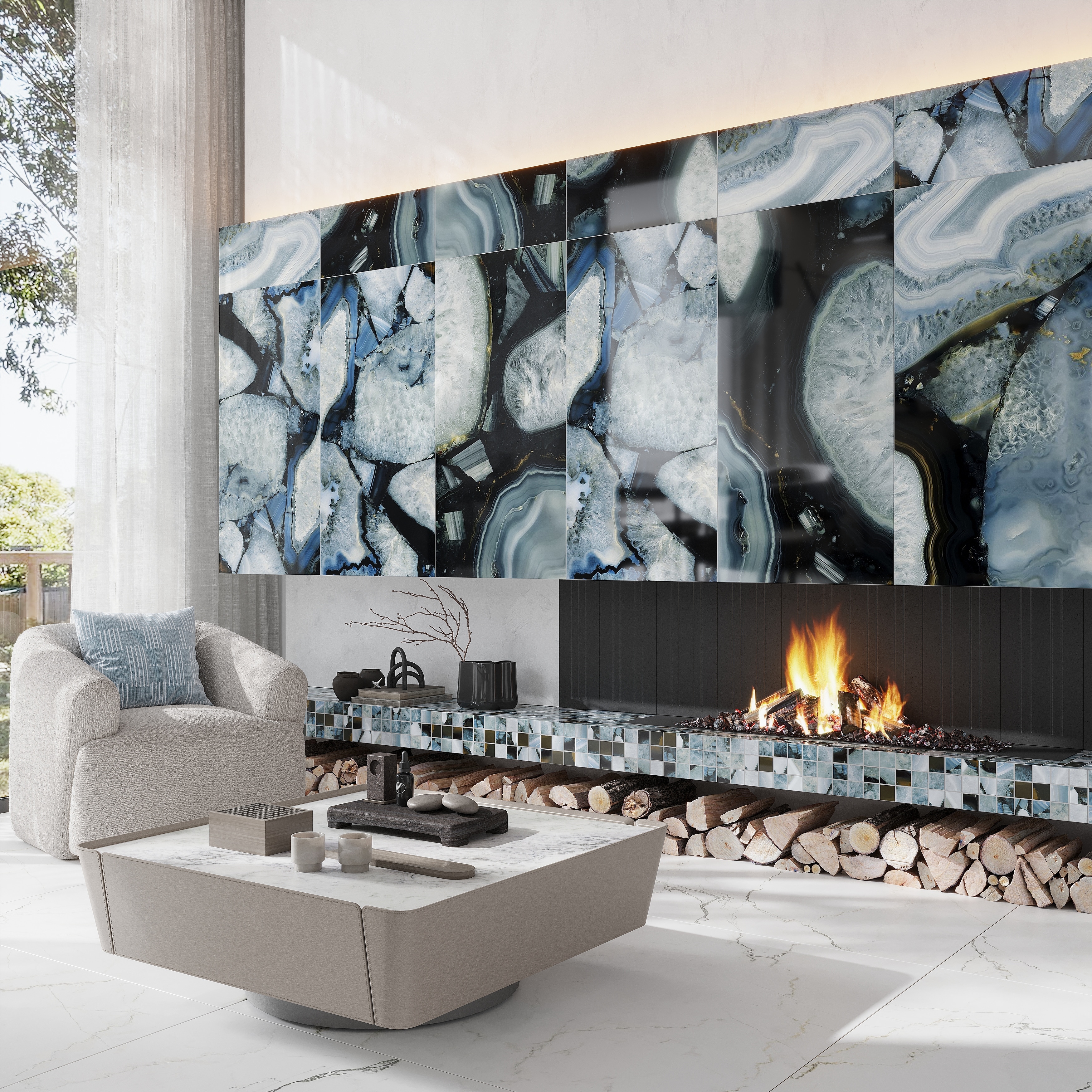 Splendor 24x48 Icy Blue Porcelain Large Format Geode Agate Wall and Floor Tile (15.5 sq ft/case) - 2 Pack
