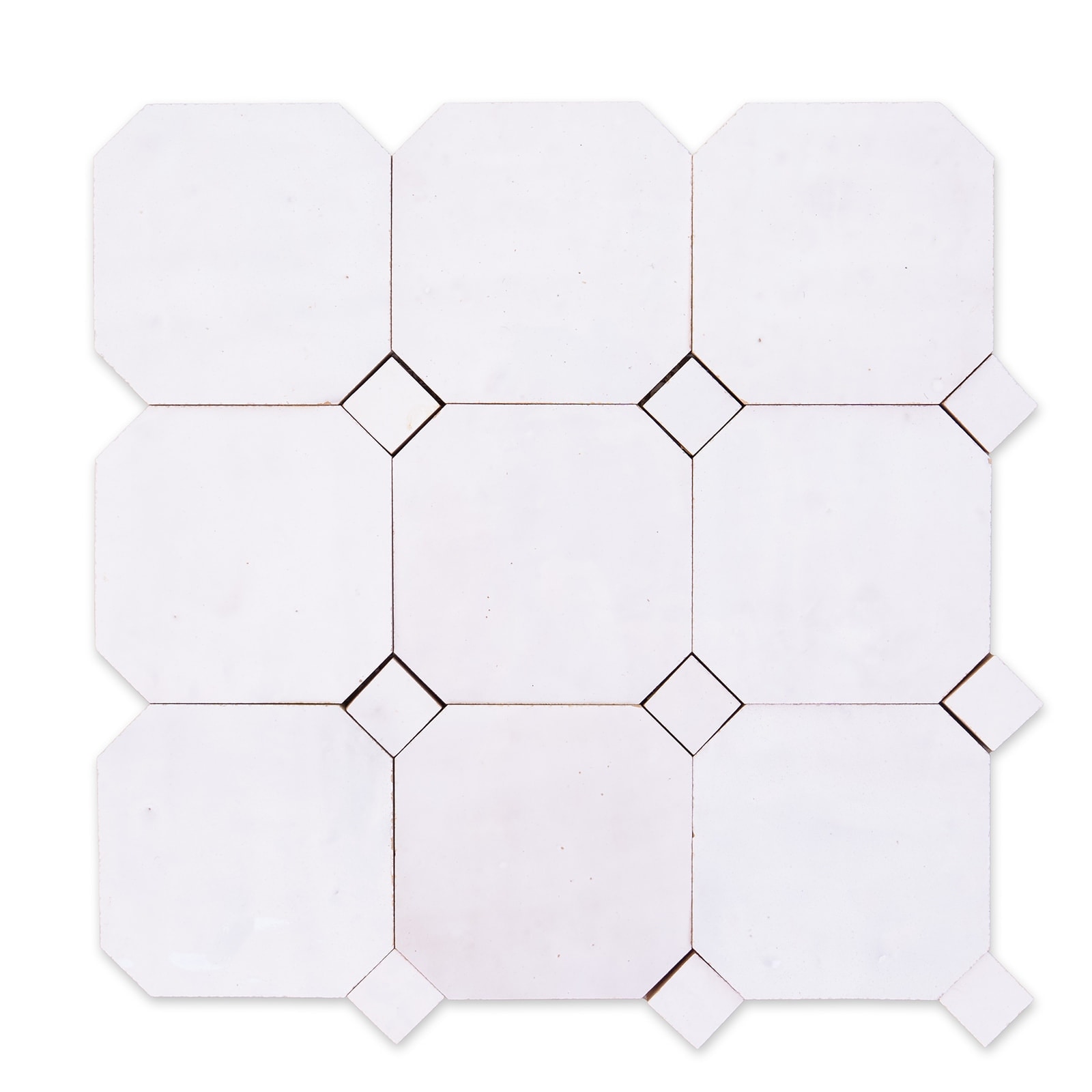 Contemporary Zellige Panels,12''x12''x0.5'', White and White Accents