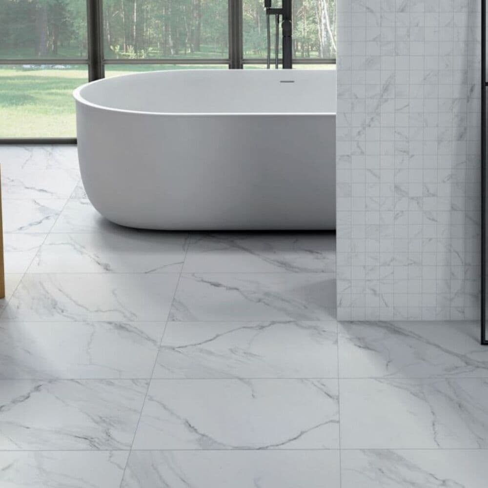 Cheyenne 2x2 White Polished Porcelain Mosaic Floor & Wall Tile, Marble Look
