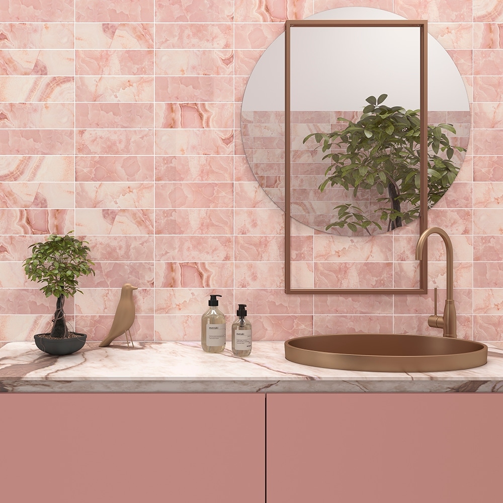 Isla 4x12 Glossy Ceramic Subway Wall Tile, Onyx Marble Look