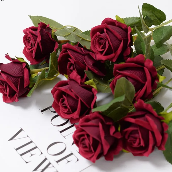 5 Fork 15 Head Silk Rose Wedding Bouquet Christmas Decoration Vase Home Floral Arrangement DIY Scrapbook Artificial Flow red